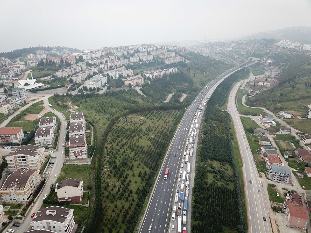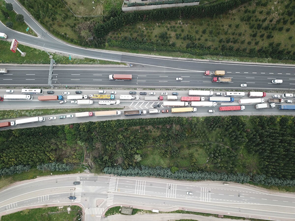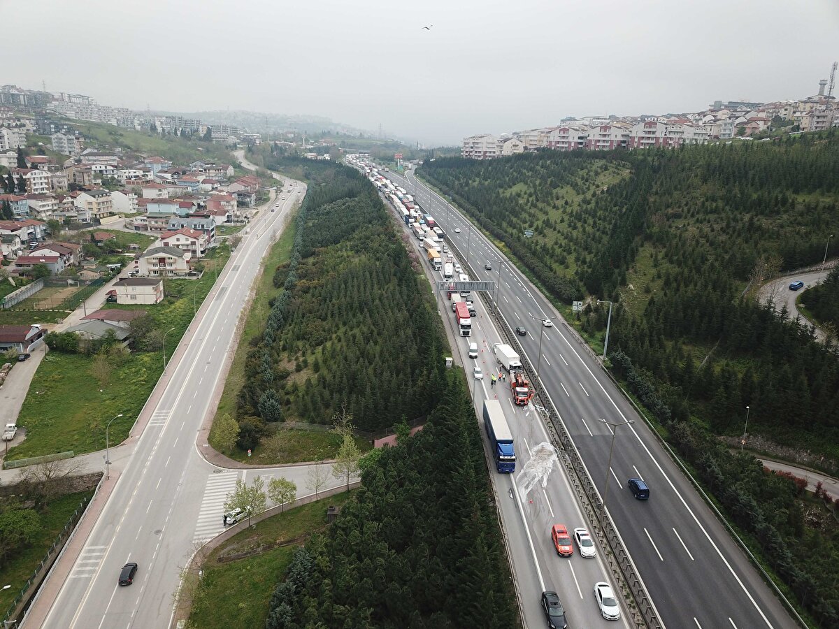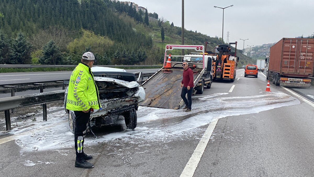 Kocaeli'nin İzmit ilçesi TEM Otoyolu'nda arıza yaptığı için sürücüsünün sol şeride park ettiği otomobile kamyon çarptı. Kaza nedeniyle trafiğe kapanan yolun İstanbul yönünde, uzun araç kuyrukları oluştu.