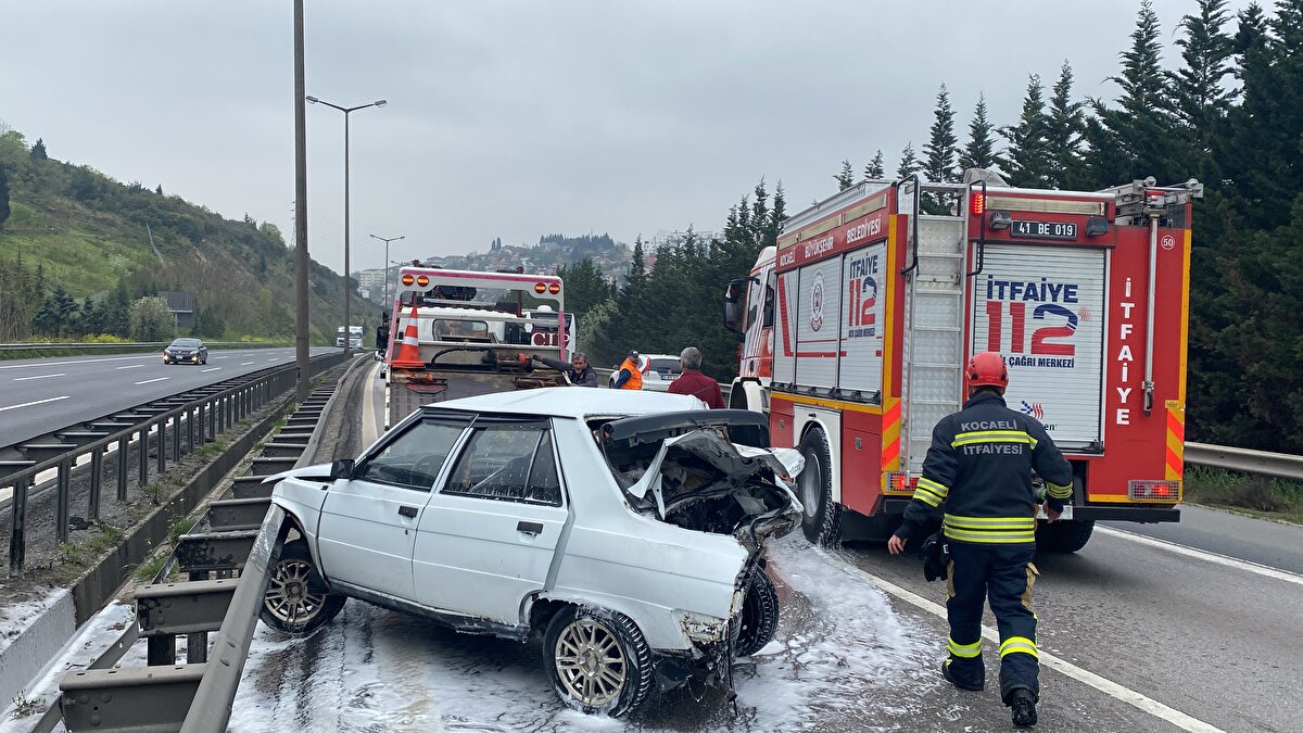 Ölen ya da yaralananın olmadığı kazada otomobil alev aldı. İhbar üzerine bölgeye sevk edilen itfaiye ekipleri, alevlere köpük sıktı.