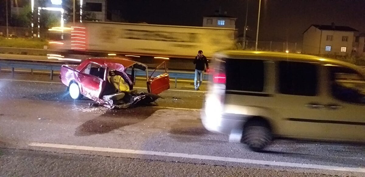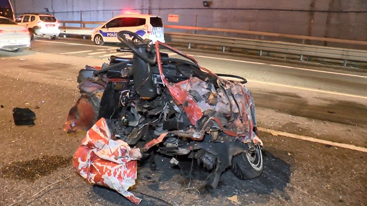 TEM'de makas atarken üç araca çarpan otomobil ikiye bölündü: İki yaralı
