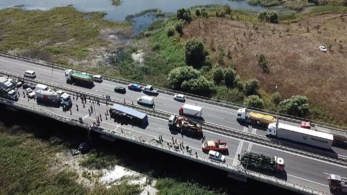 TEM'de TIR devrildi: Otoyolun Edirne istikameti kapandı
