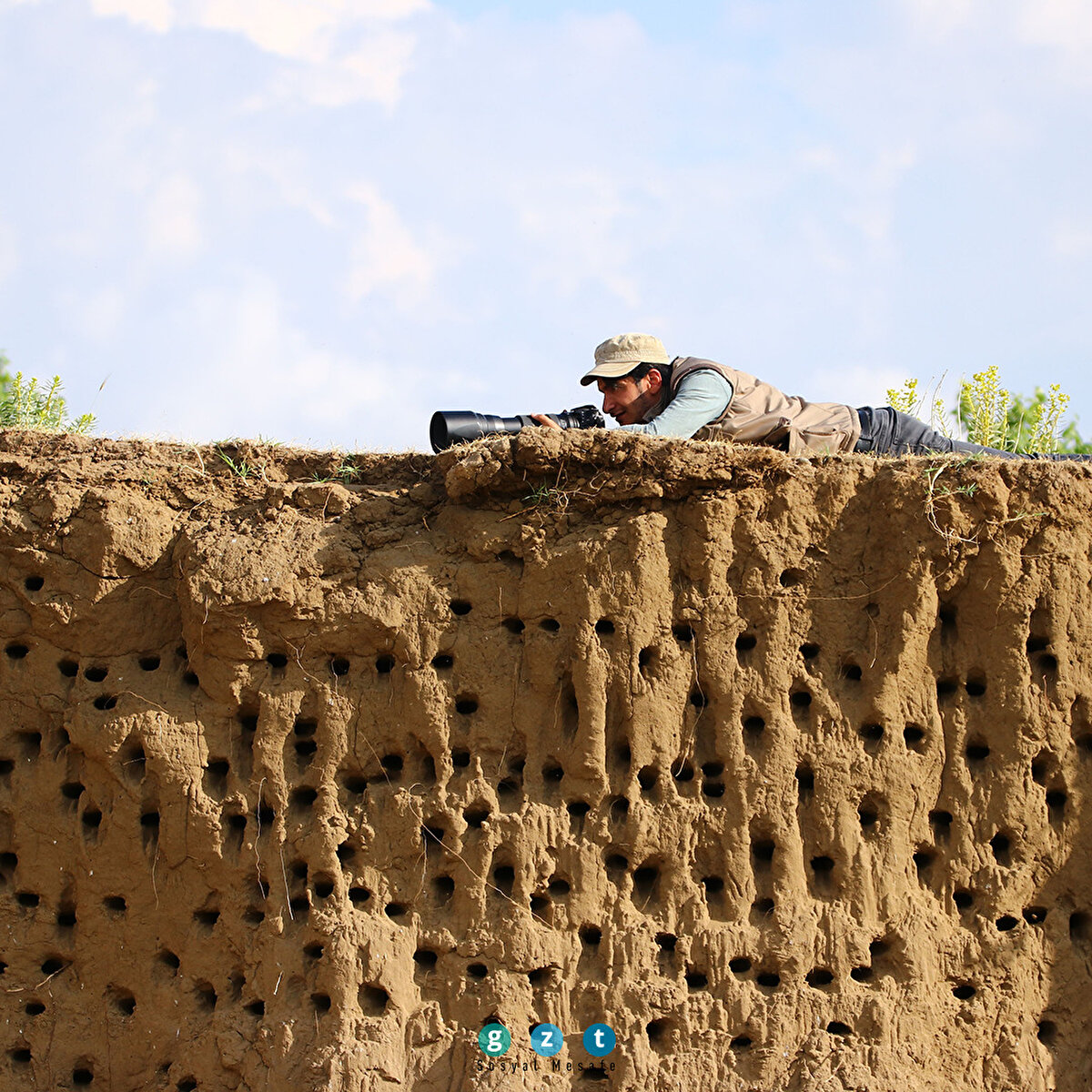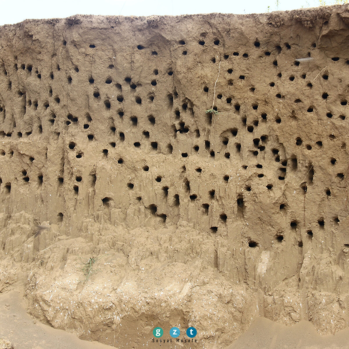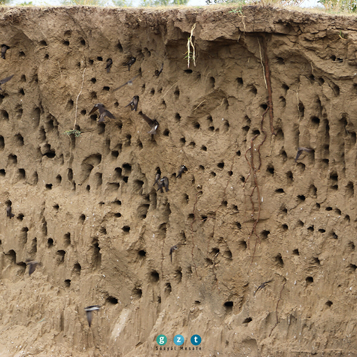 Van'ın Erciş ilçesinde, vatandaşların çeşitli işlerinde kullanmak için toprak taşıdığı tepeye yuva yapan yüzlerce kırlangıç, fotoğraf tutkunlarının ilgi odağı oldu