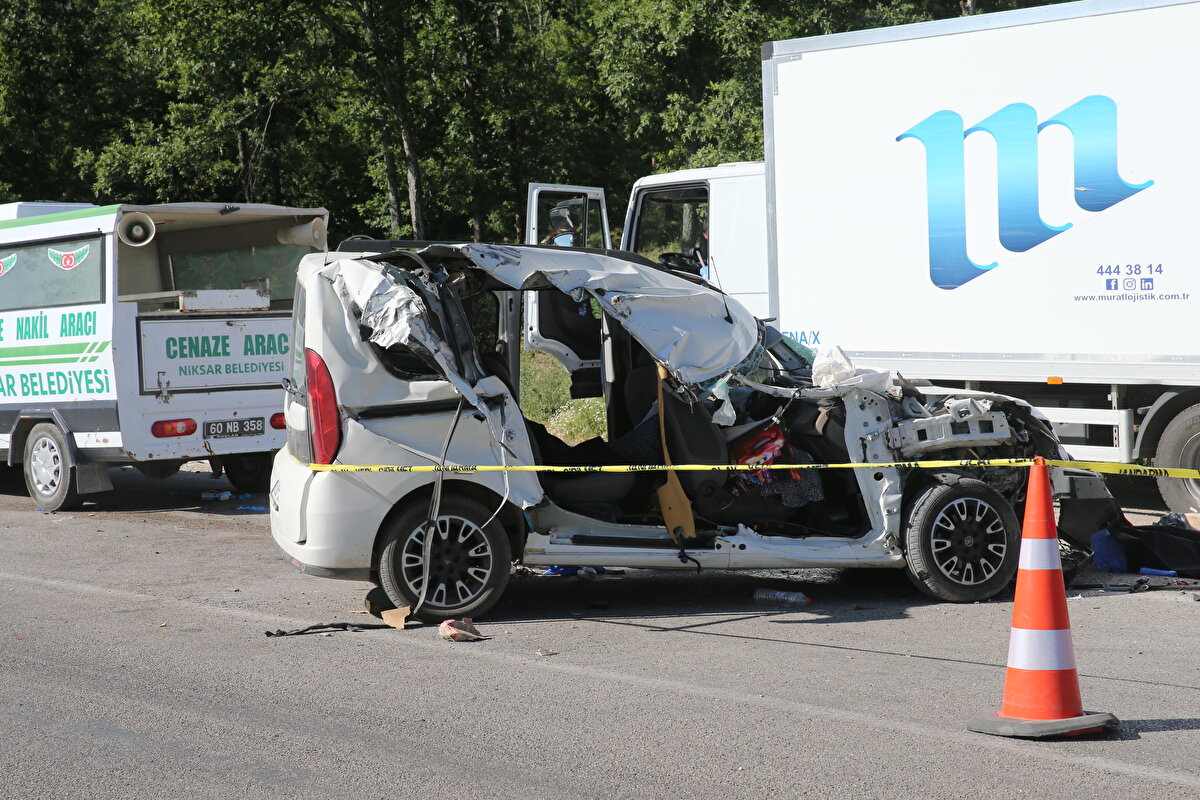 Tokat’ta ticari aracın kamyona çarptığı feci kazada iki ölü üç yaralı
