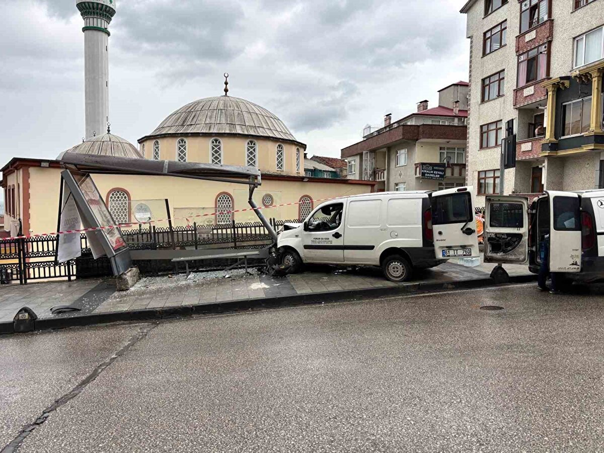 El frenini çekmeyi unuttu: Araç otobüs durağına daldı... İşte o anlar