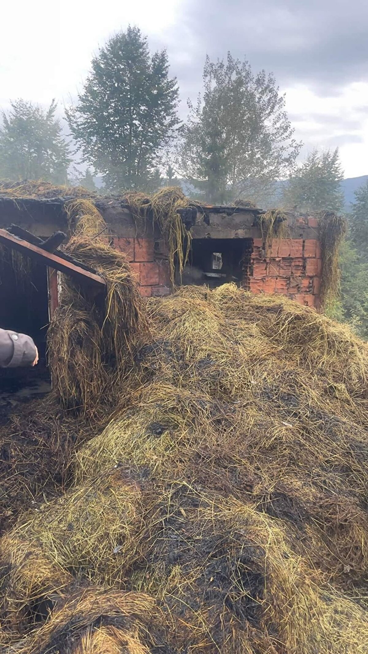 Tonya ilçesi Kalınçam Mahallesi'ne bağlı Kurtalli mevkisinde ise Erol Çakır'a ait büyükbaş hayvanlarının bulunduğu ahıra yıldırım isabet etti. Üst katı saman dolu olan ahır, kısa sürede alev alırken 1 inek de öldü.