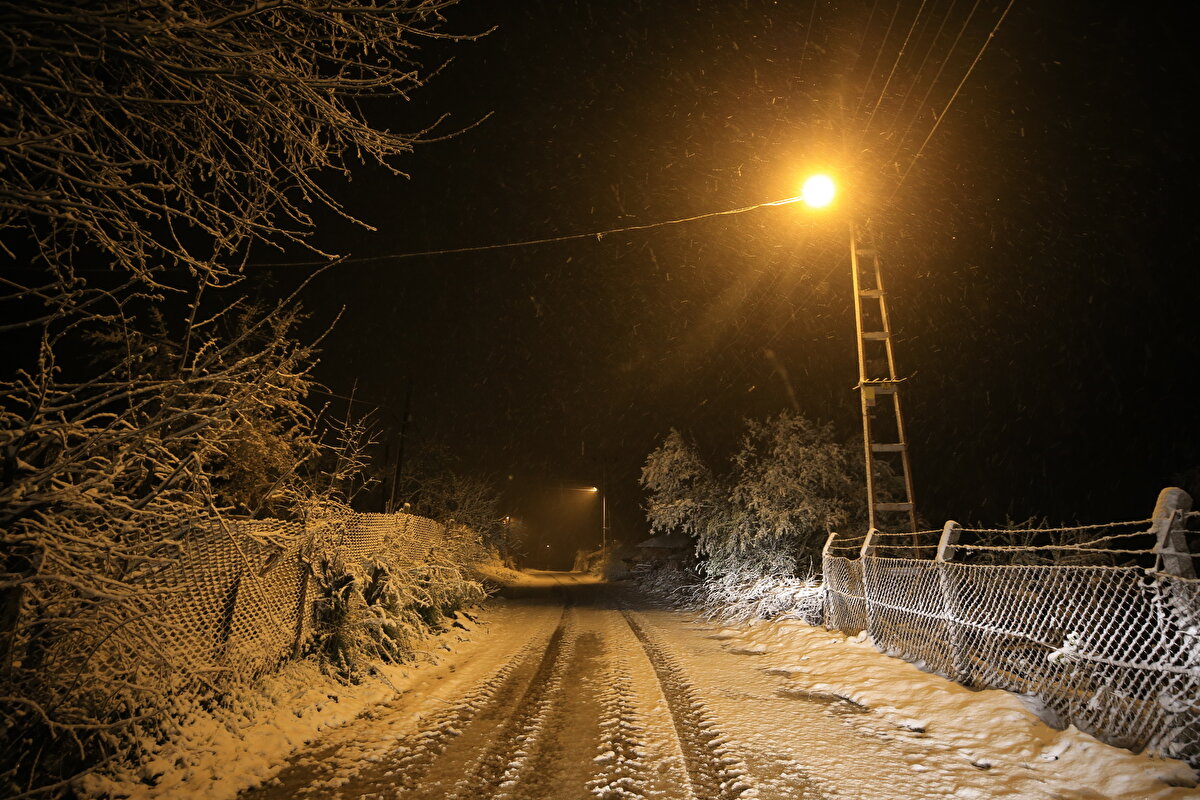 Hava sıcaklığının sıfırın altında 1 derece ölçüldüğü bölgede, Karayolları ekipleri çalışmalarını sürdürüyor.