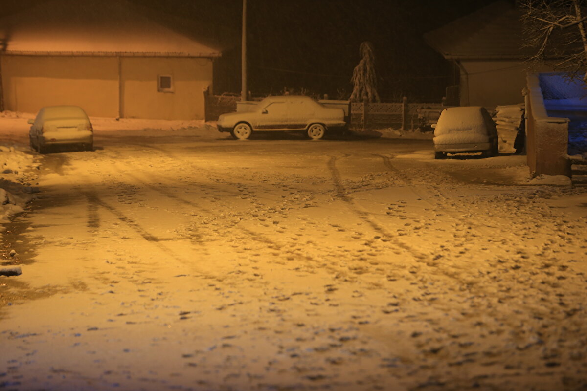 Yeni sistemin etkisinde hava sıcaklıkları birden 15 dereceden fazla düşen Trakya'da dün etkili olan sağanak gece saatlerinde yer yer kar yağışına döndü.