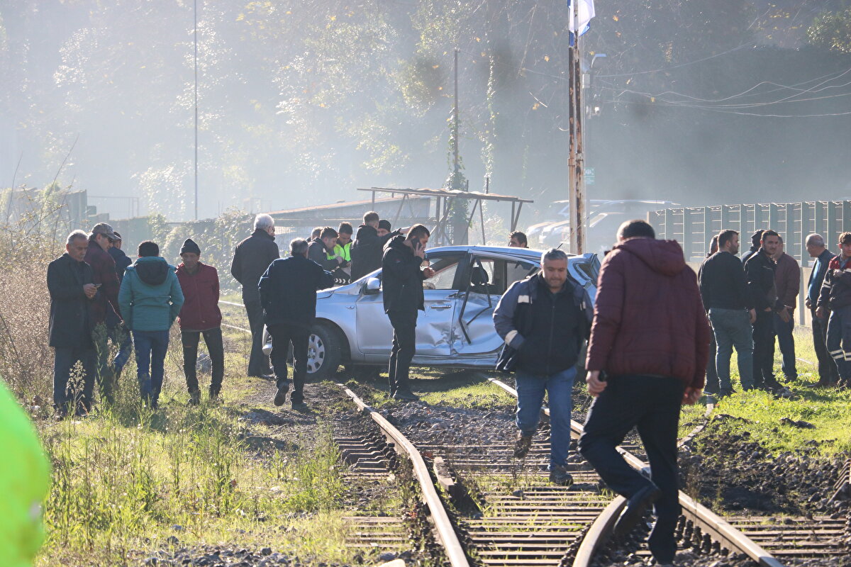 Tren hemzemin geçitte otomobile çarptı: 1'i çocuk 3 yaralı