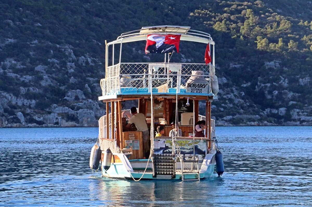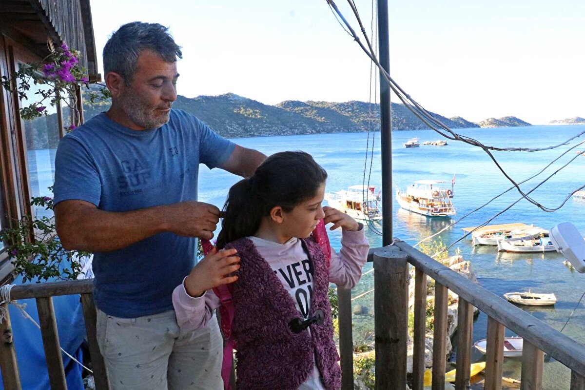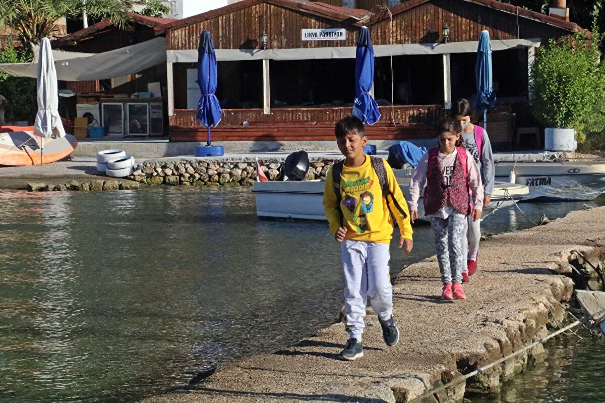 Antalya'nın Demre ilçesine bağlı Üçağız Mahallesi’nin bir bölümünü oluşturan Kaleköy’de oturan öğrenciler, ulaşımın teknelerle sağlandığı evlerinden okula deniz yoluyla ulaşabiliyor.
