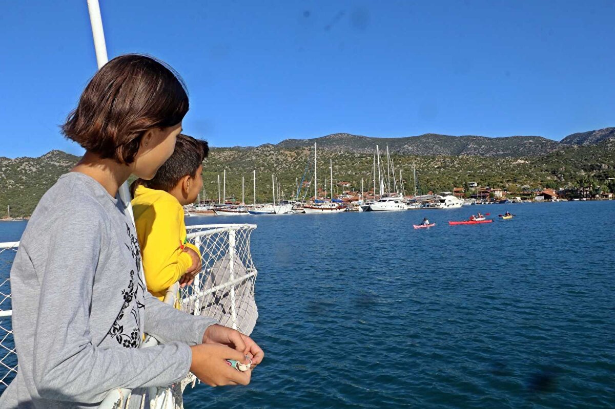 Teknelerin yanaşabileceği buluşma noktasına gelen öğrenciler, 1,6 millik yaklaşık 15 dakika süren deniz yolculuğu boyunca Simena Antik Kenti, tarihi kale, kaya mezarları, amfitiyatro ve eşsiz manzarayı izleyerek Kekova’ya ulaşıyor.