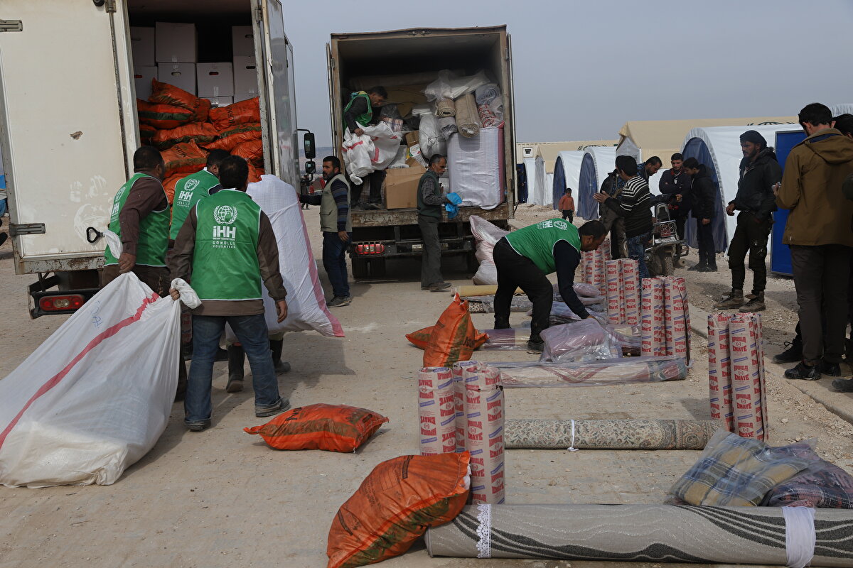 Türkiye sınırına göç eden ailelere İHH’dan çadır desteği