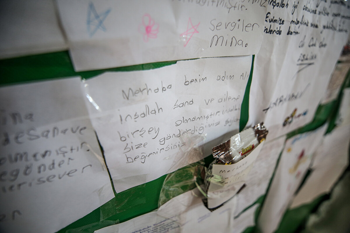 Asrın felaketi olarak nitelenen Kahramanmaraş merkezli depremlerin ardından Hatay'da toplanan yardımlar arasından çıkan notlar okuyanları duygulandırıyor.