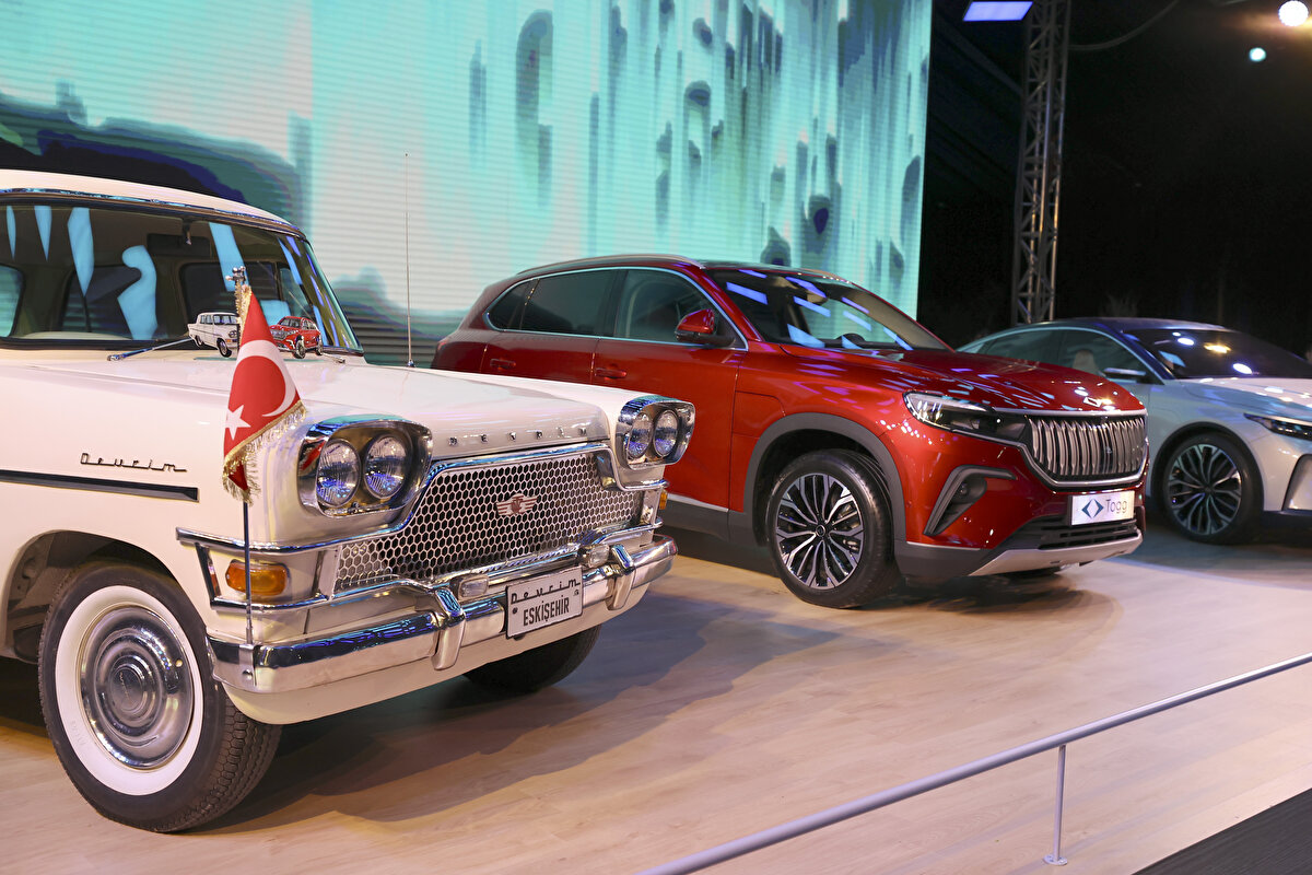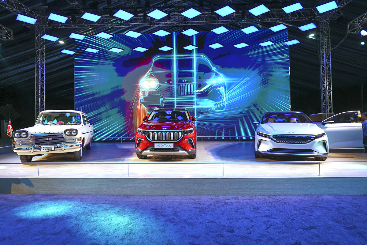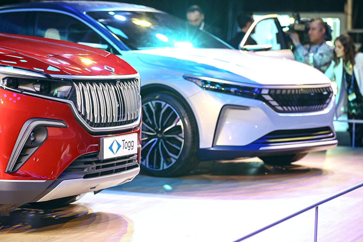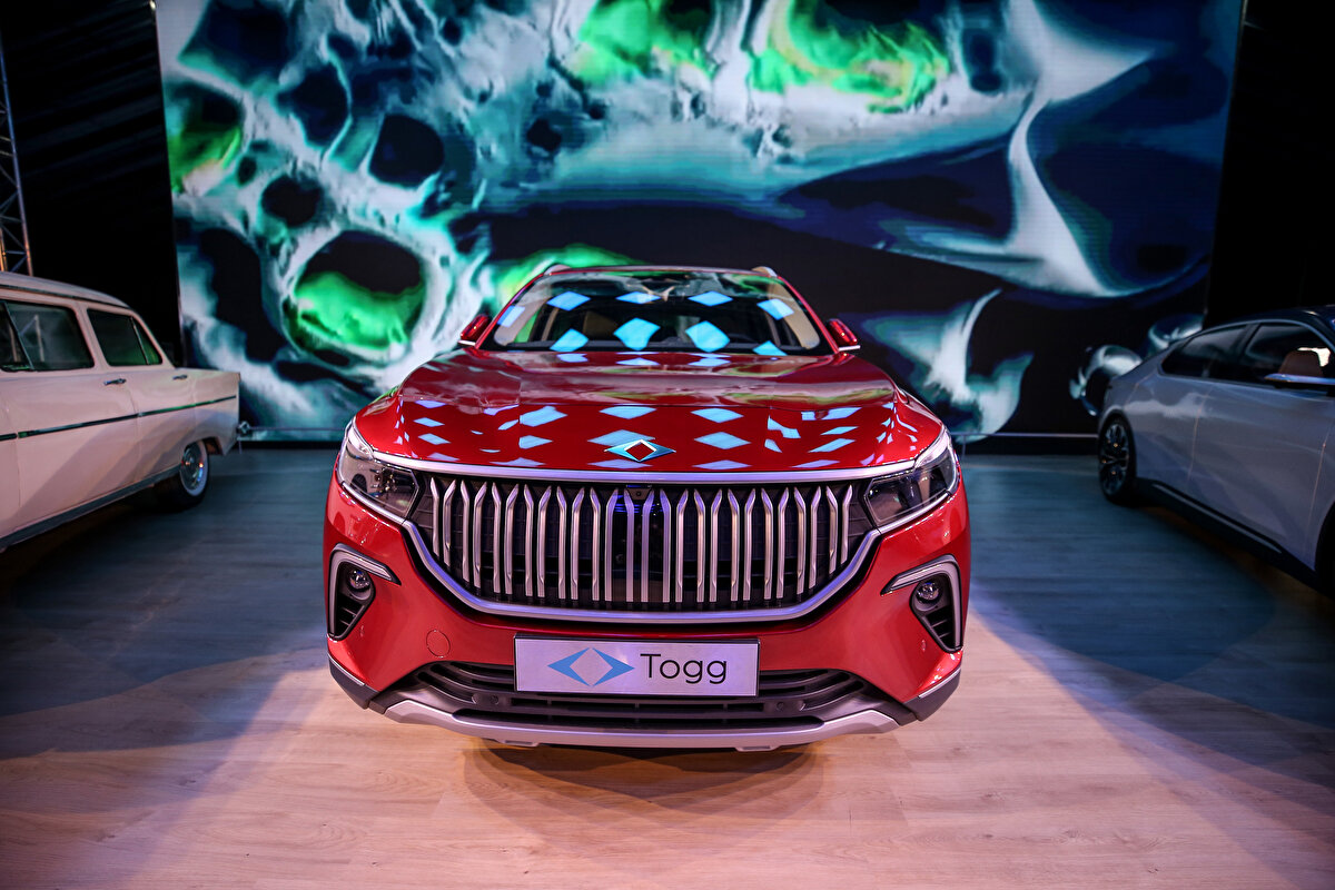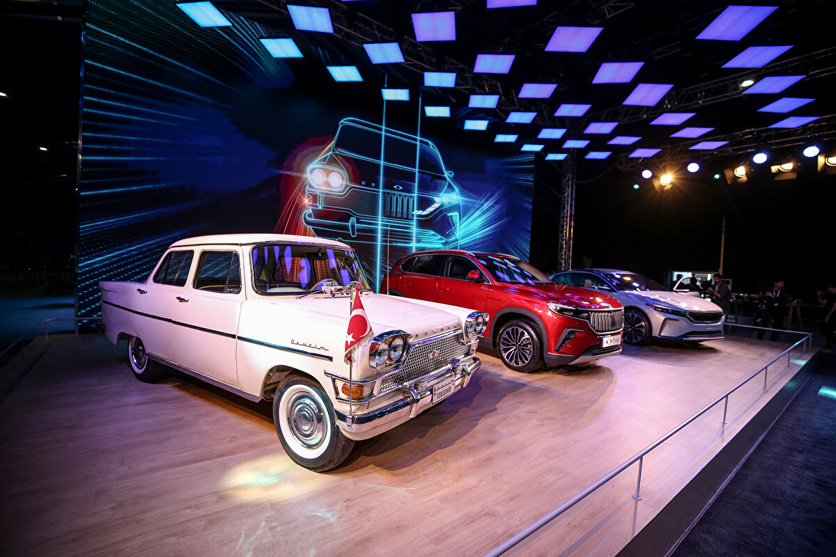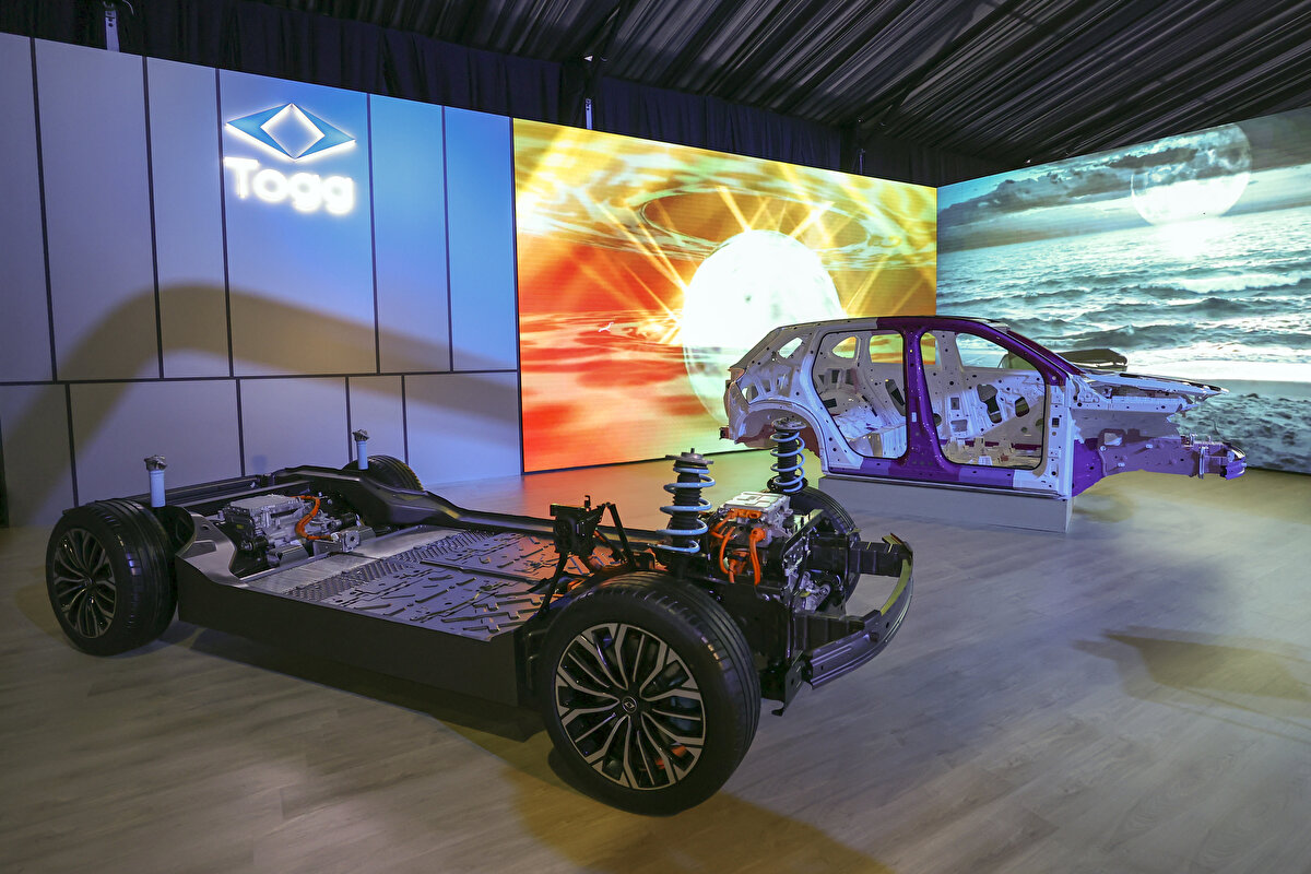 Burada oluşturulan fuaye alanında Togg'un C-SUV ve sedan modeli ile sergilenen Devrim otomobili davetlilerden yoğun ilgi gördü.