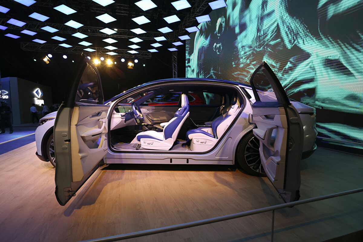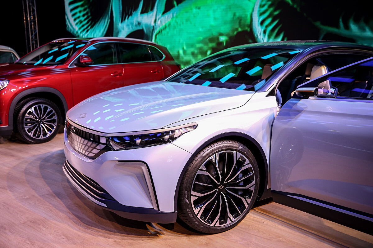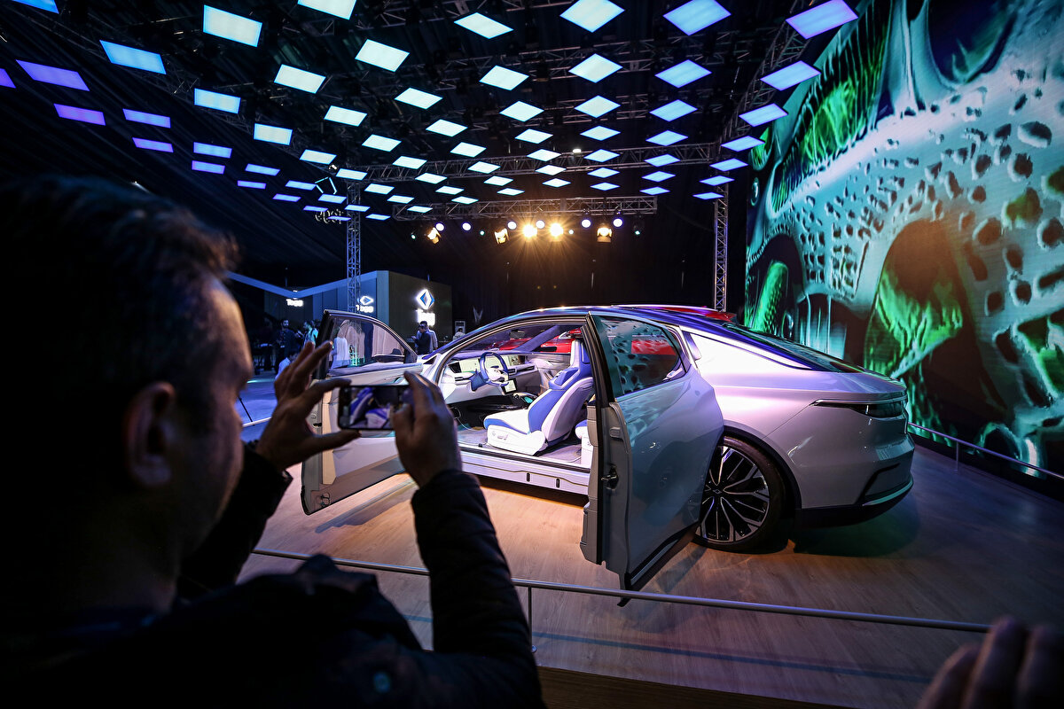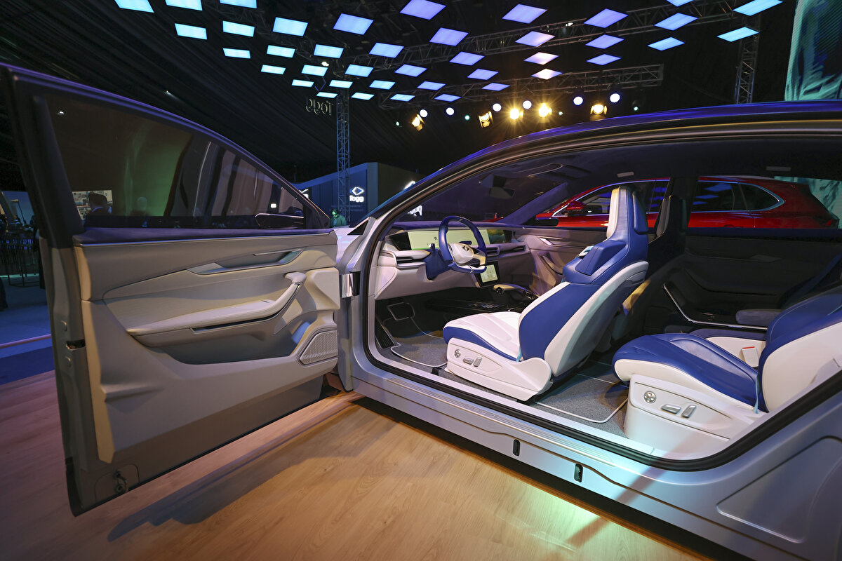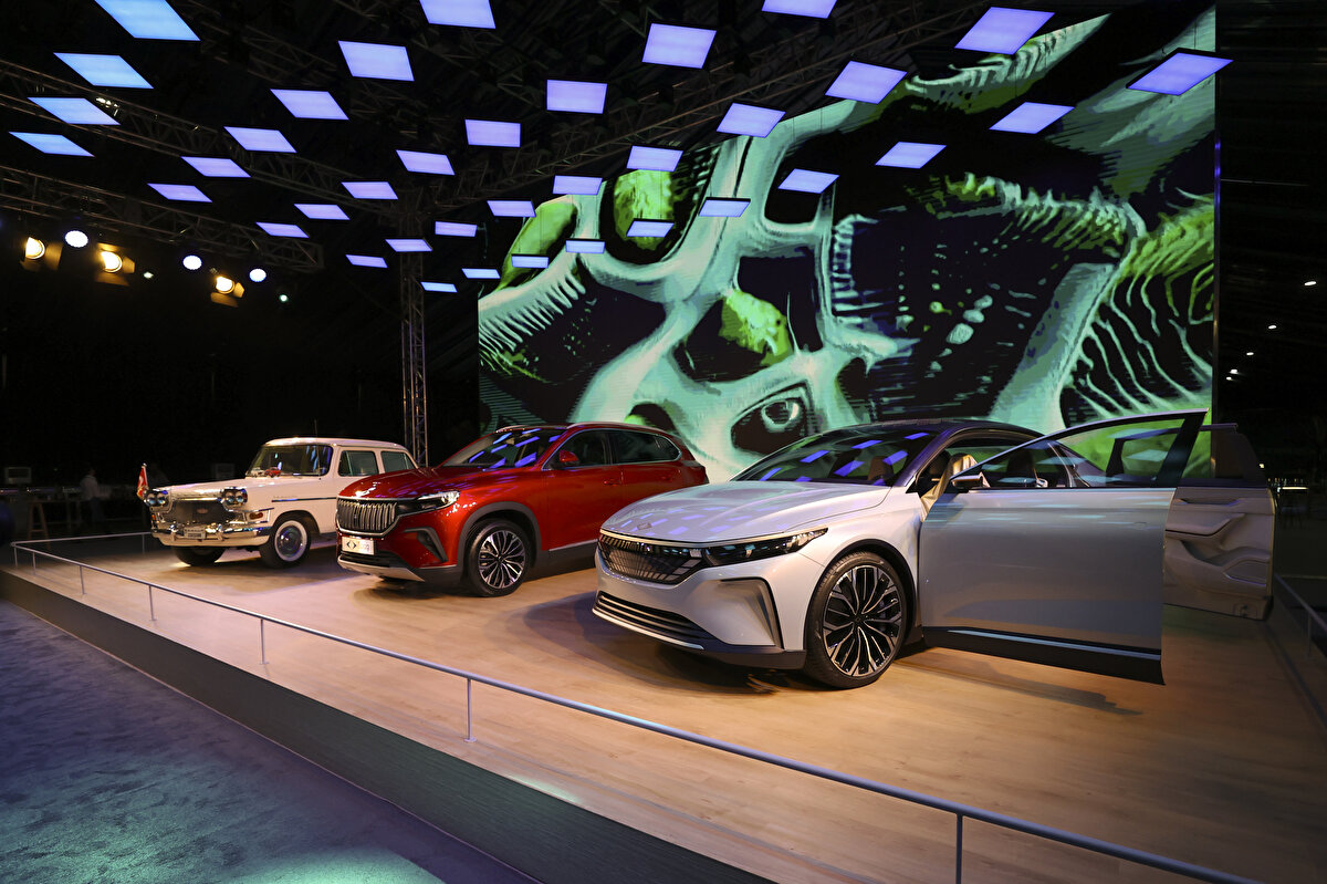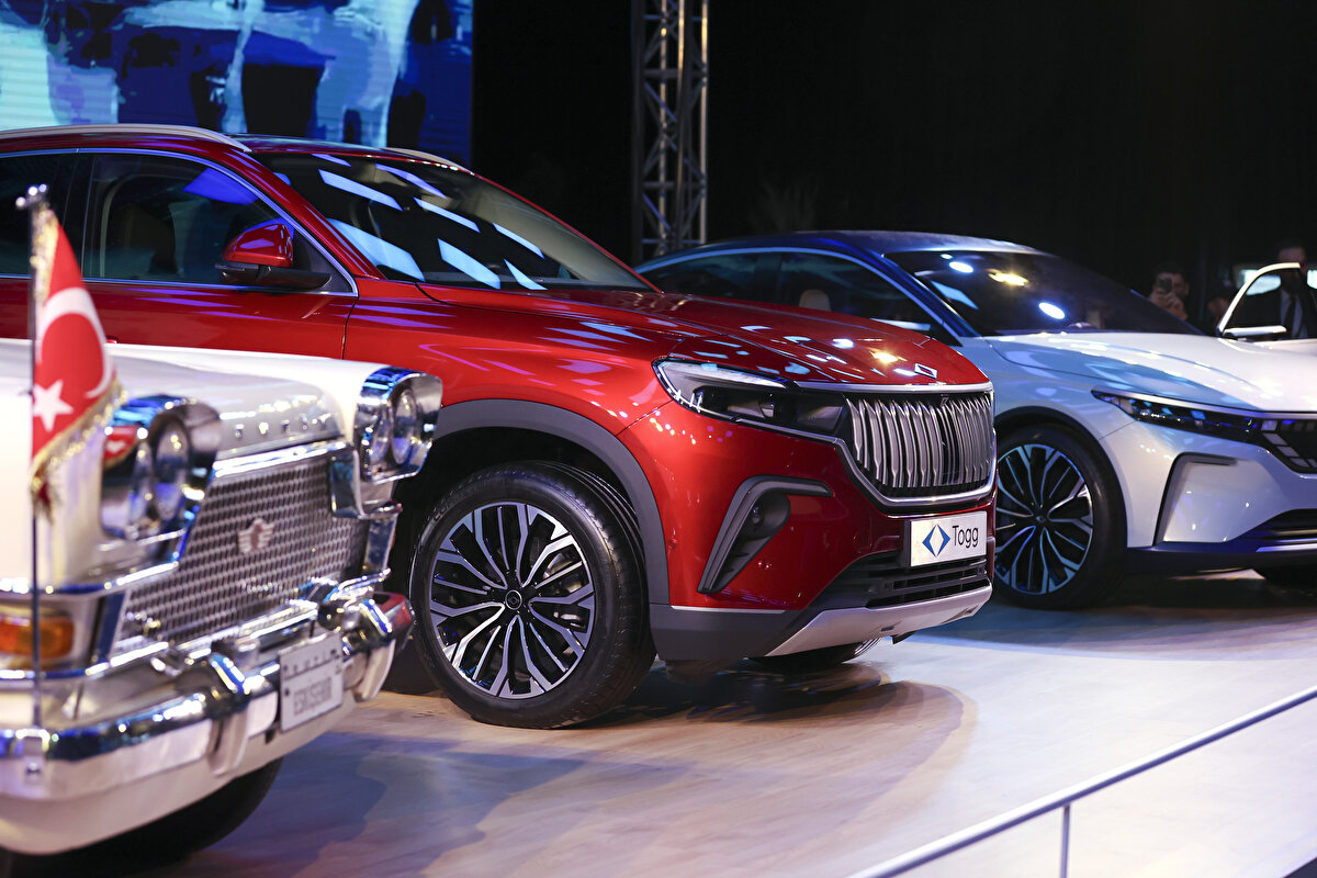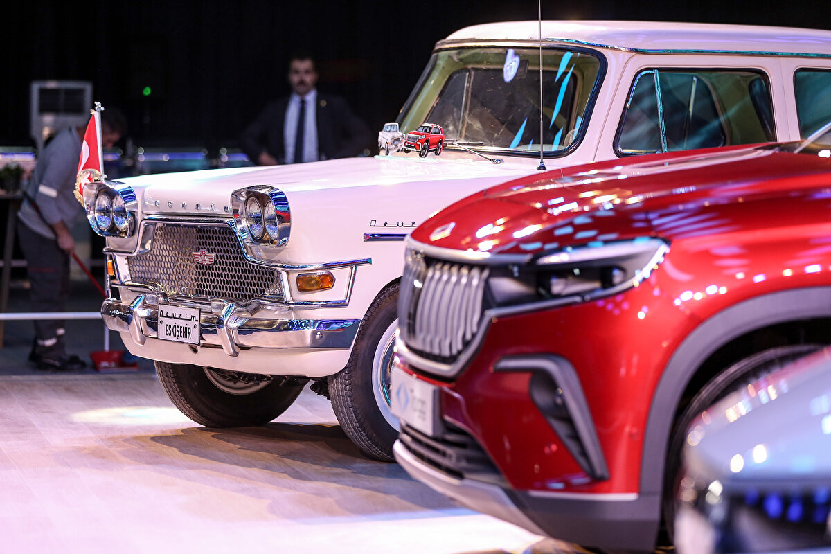 Burada oluşturulan fuaye alanında Togg'un C-SUV ve sedan modeli ile sergilenen Devrim otomobili davetlilerden yoğun ilgi gördü.