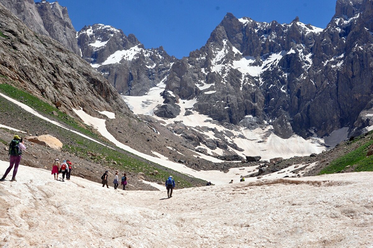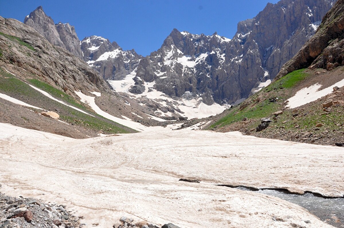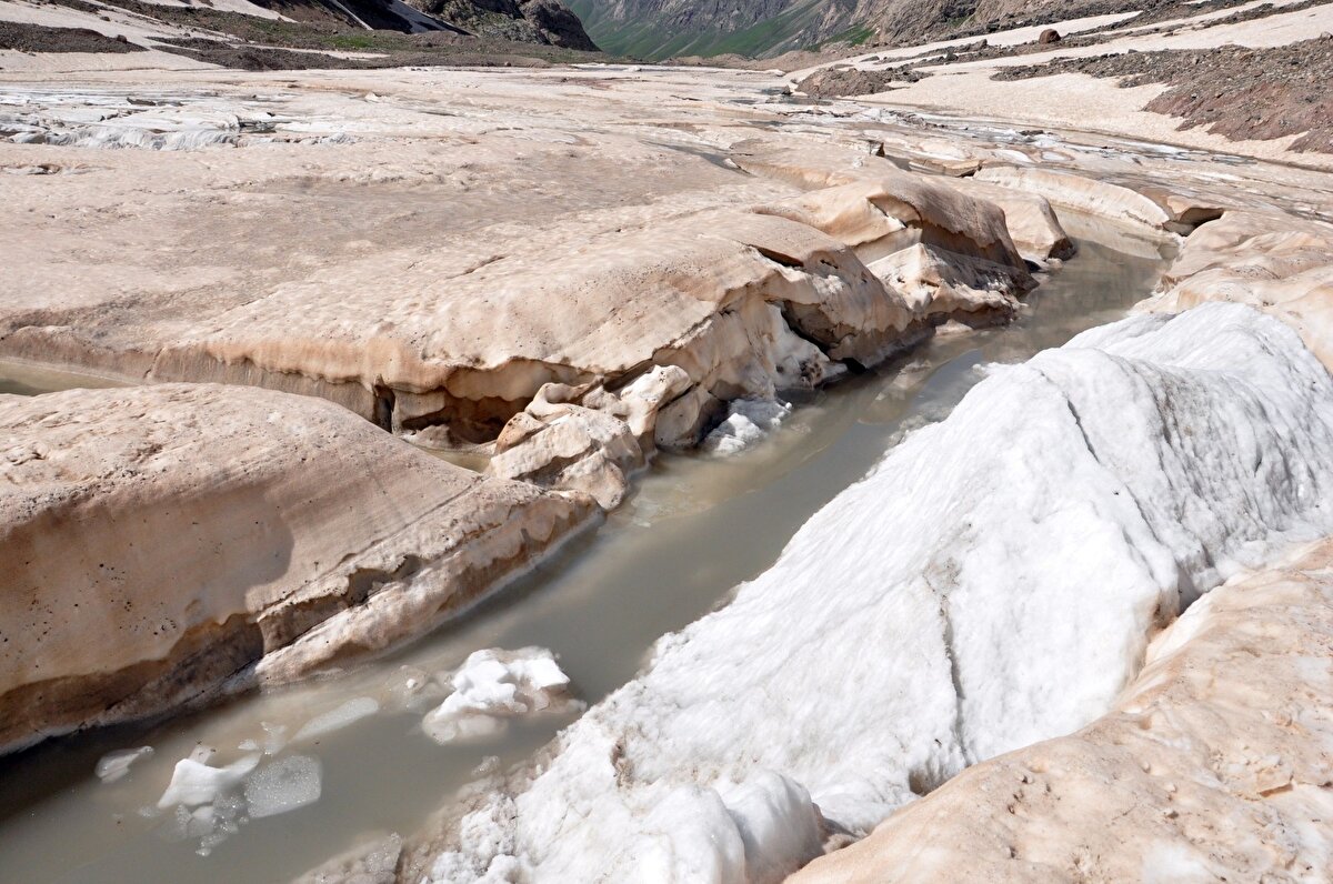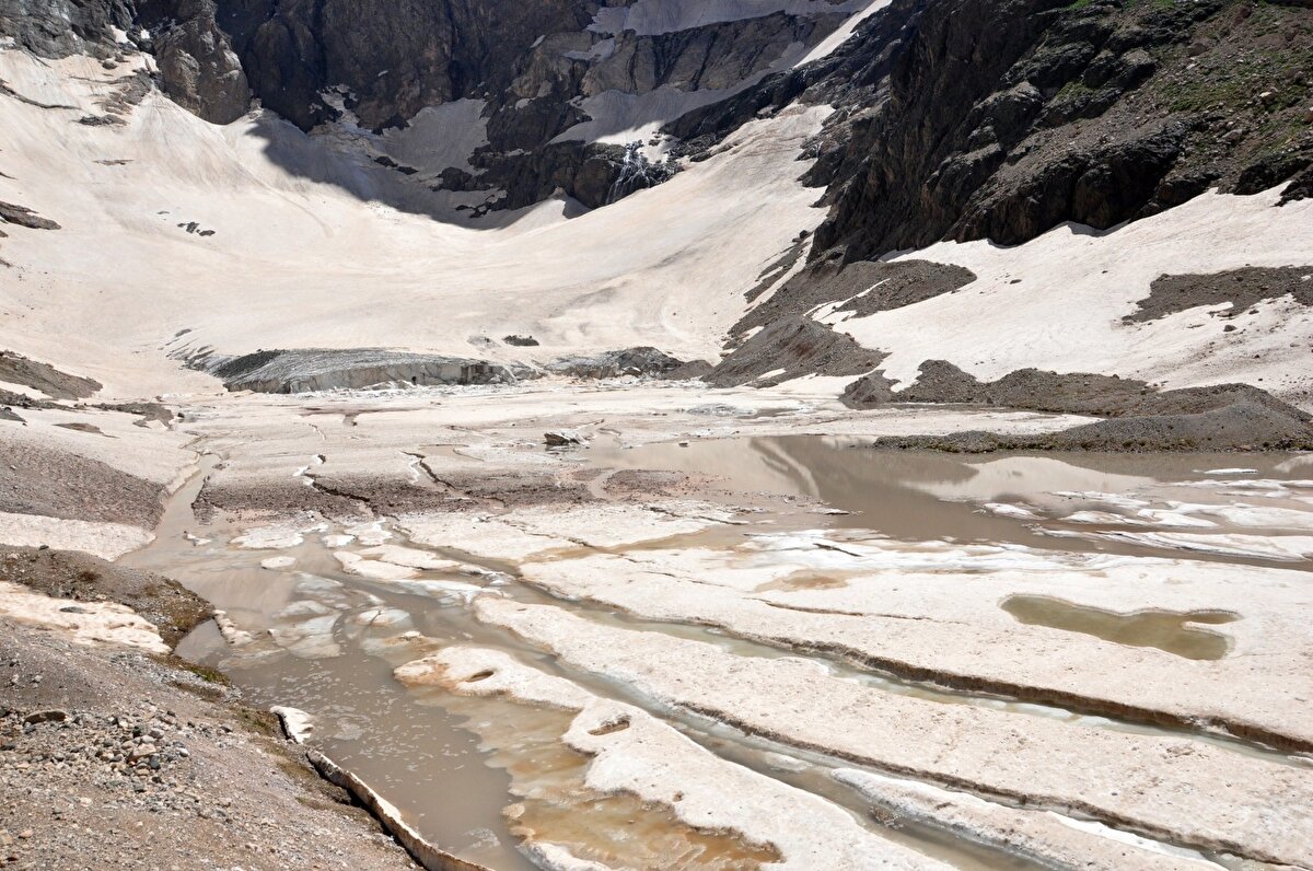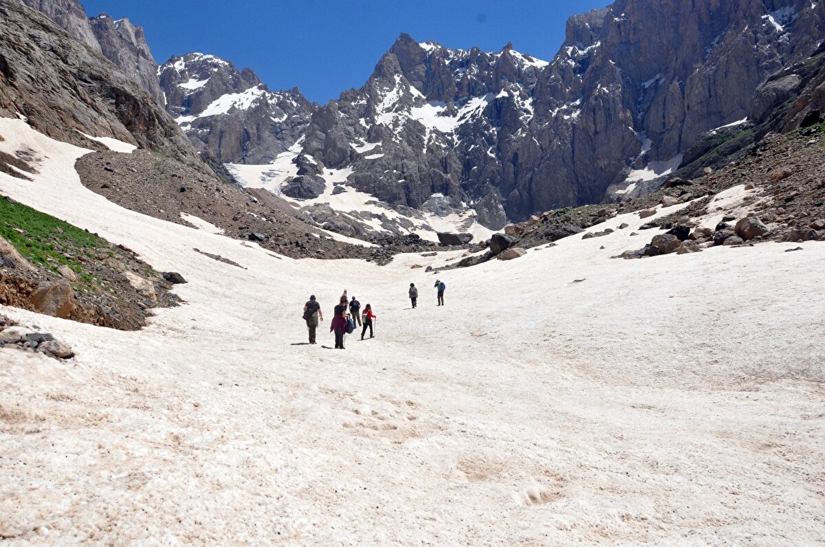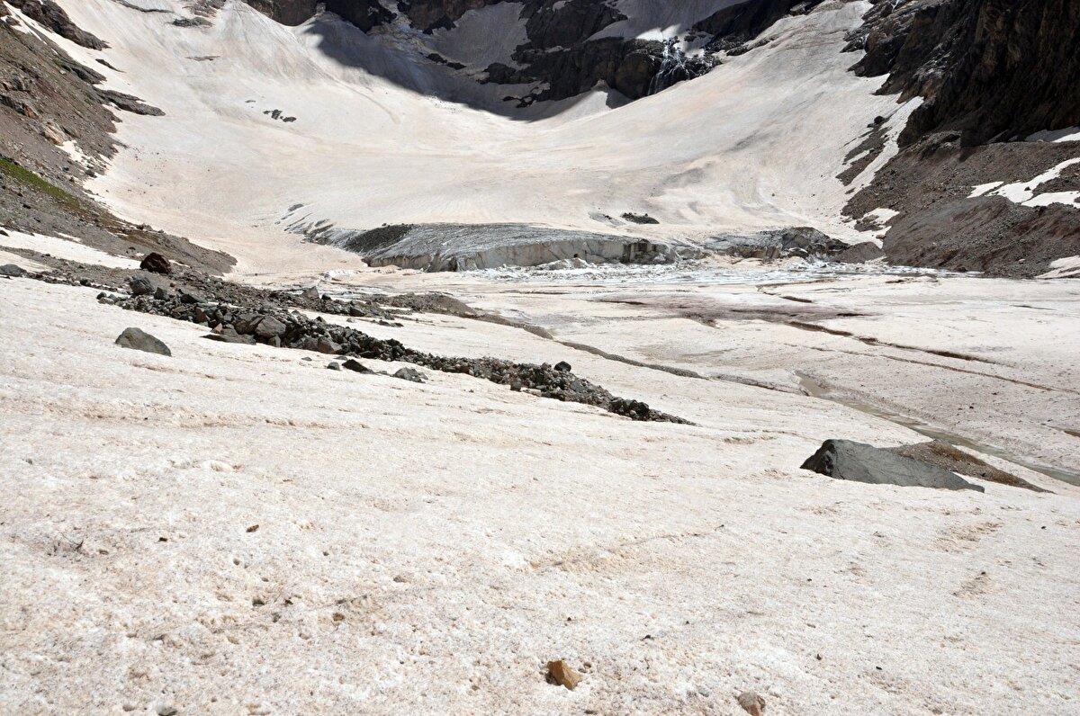 Buzulların gün geçtikçe erdiğini söyleyen doğasever Faruk Akbaş, "4 yıl önce tekrar buraya gelmiştim. Geldiğimiz yer tamamen buzuldu. Burada da buzul mağarası vardı. Buzulların yarısı yok yok olmuş.” dedi.
