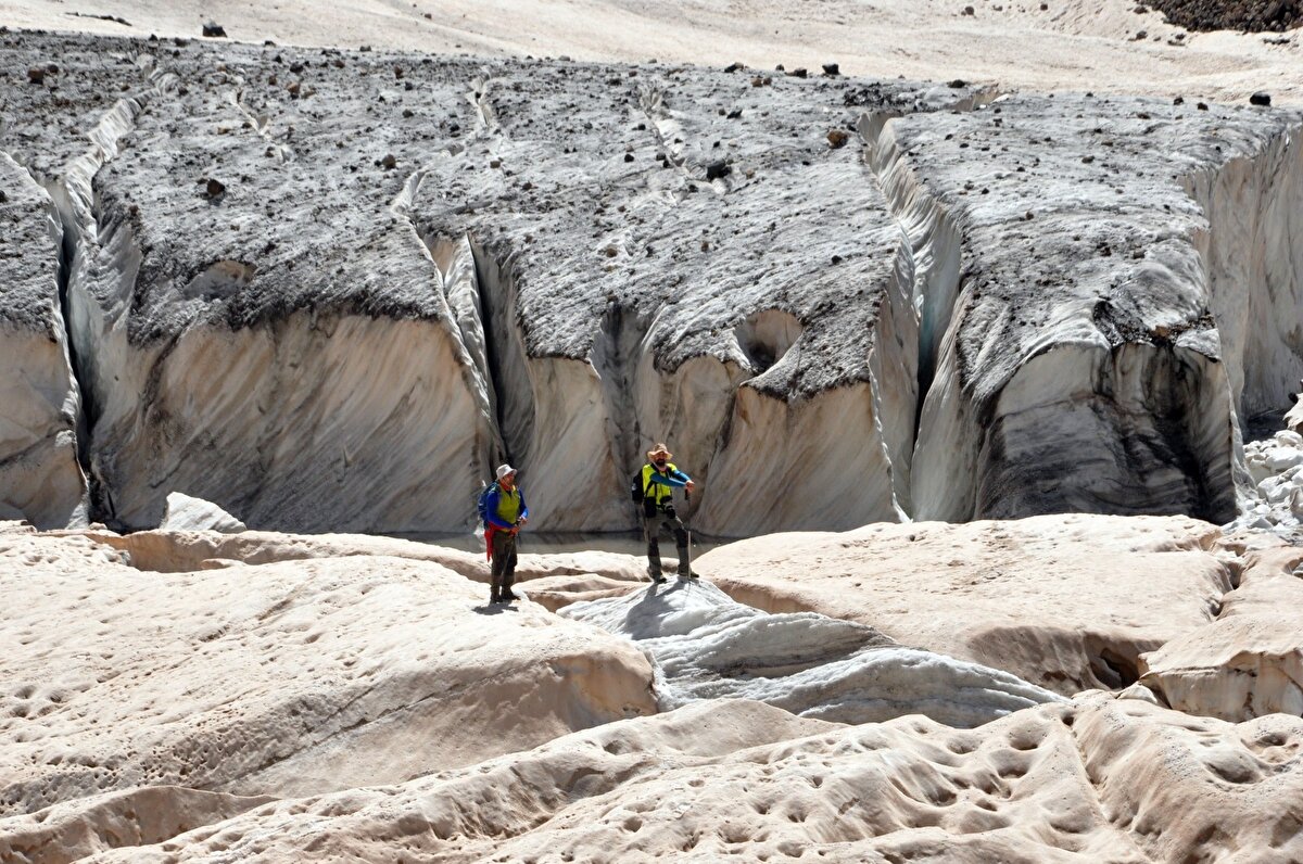 Aktif buzullar, enine buzul çatlakları, erime öncesindeki eski buzuldan geriye kalan buzul çizikleri ve buzul cilalama izlerini gören ekip, yaylalardaki otlaklarda sürü sahiplerinden bilgi aldılar.