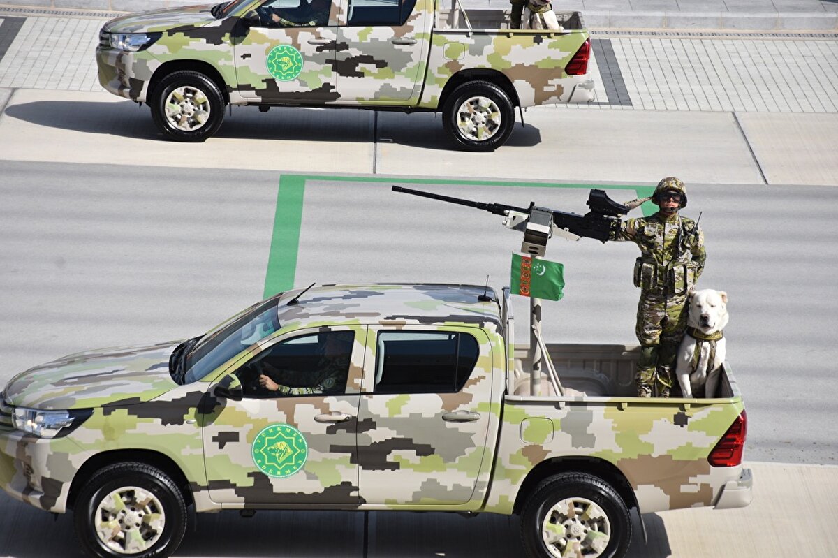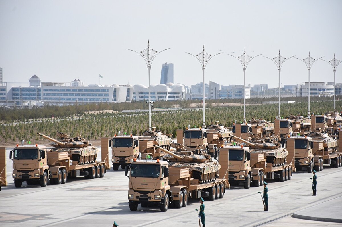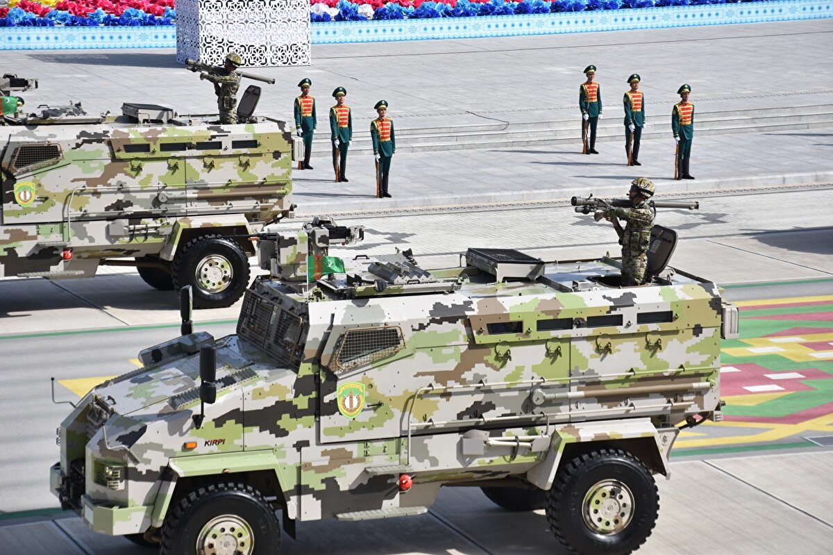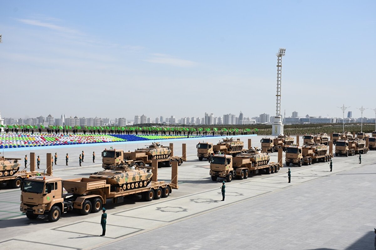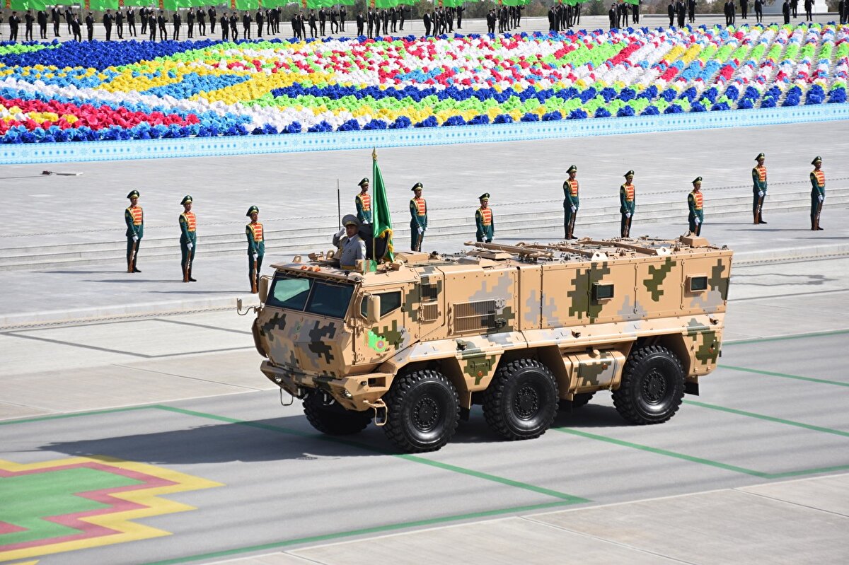 Bayraktar TB2'nin de aralarında yer aldığı Türkmenistan silahlı kuvvetleri envanterindeki bazı silahların sergilendiği törende, askerler yaptıkları gösteriyle alkış aldı.