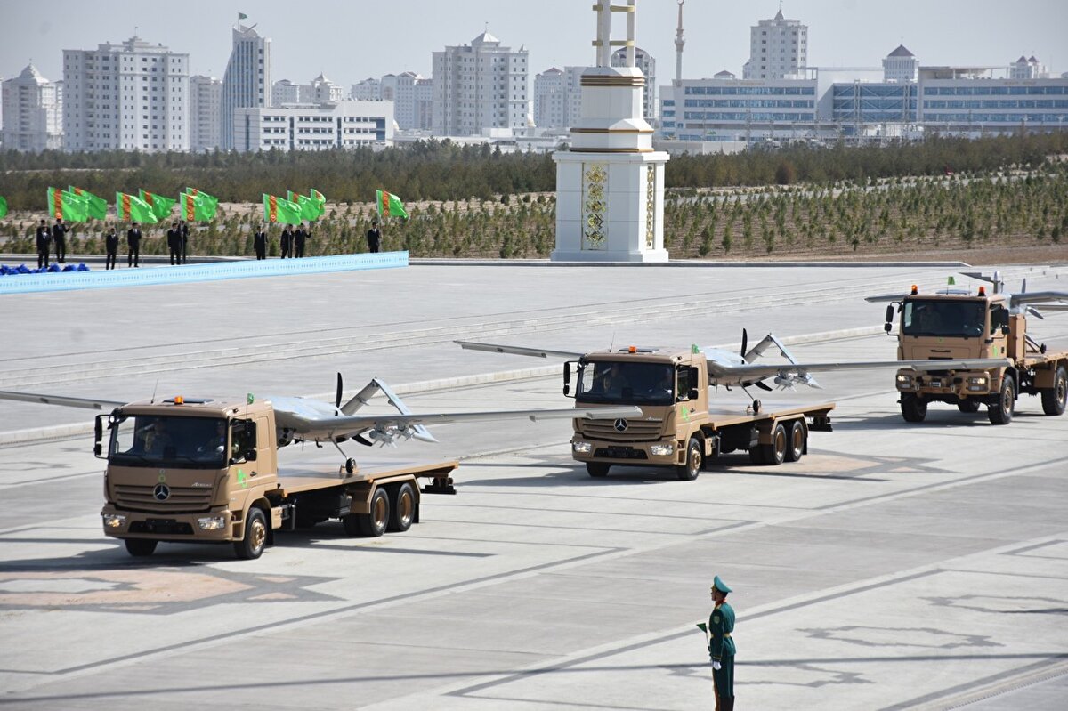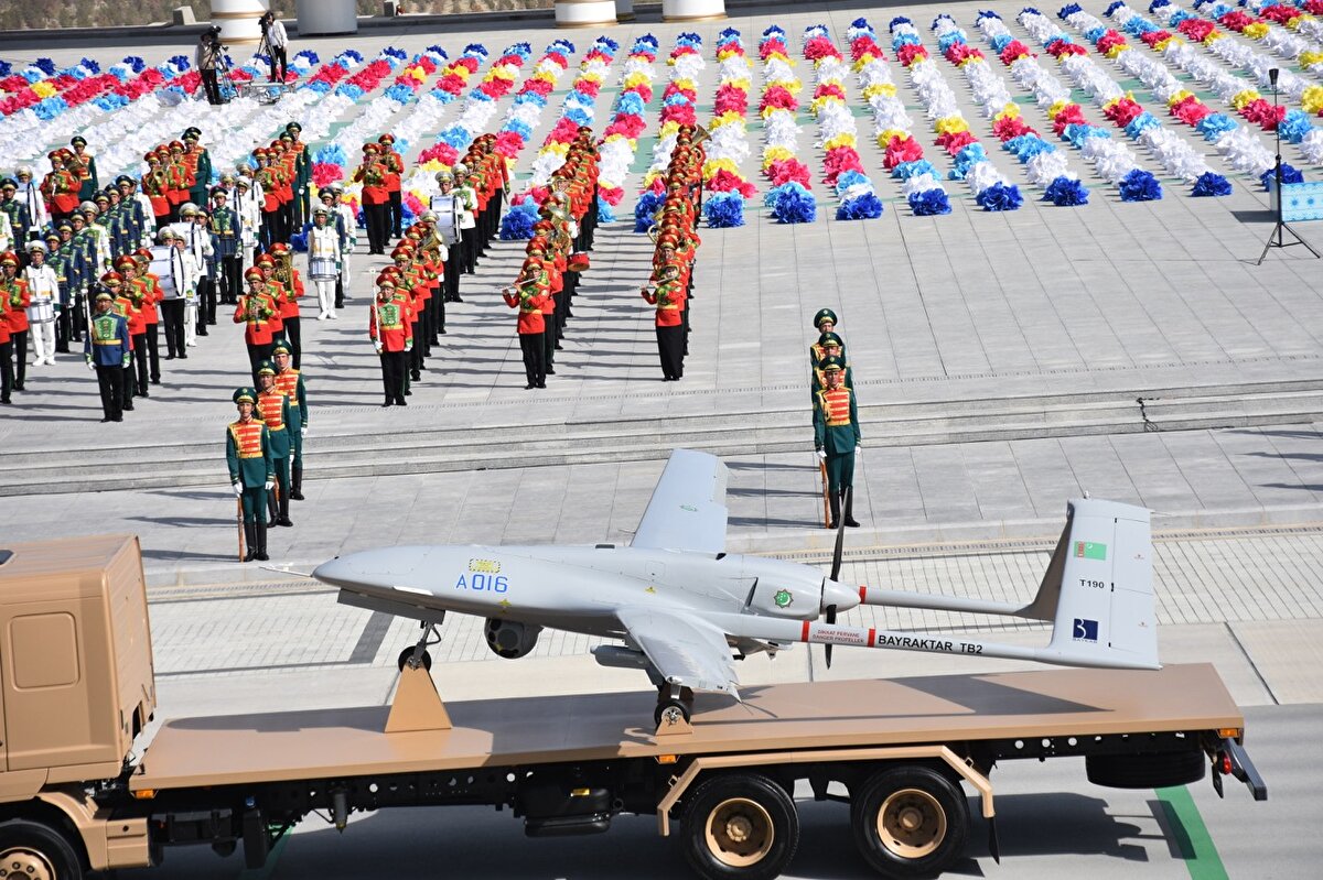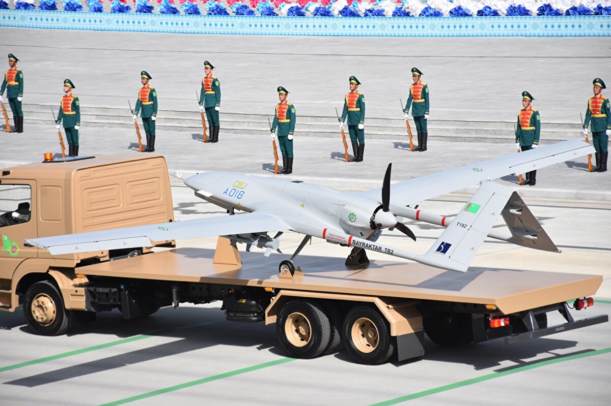 Türkmenistan'da bağımsızlığın 32. yılı dolayısıyla düzenlenen askeri geçit töreninde Türkmenistan silahlı kuvvetleri envanterindeki silahların yanı sıra Bayraktar TB2 yer aldı.
