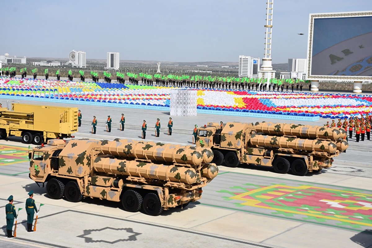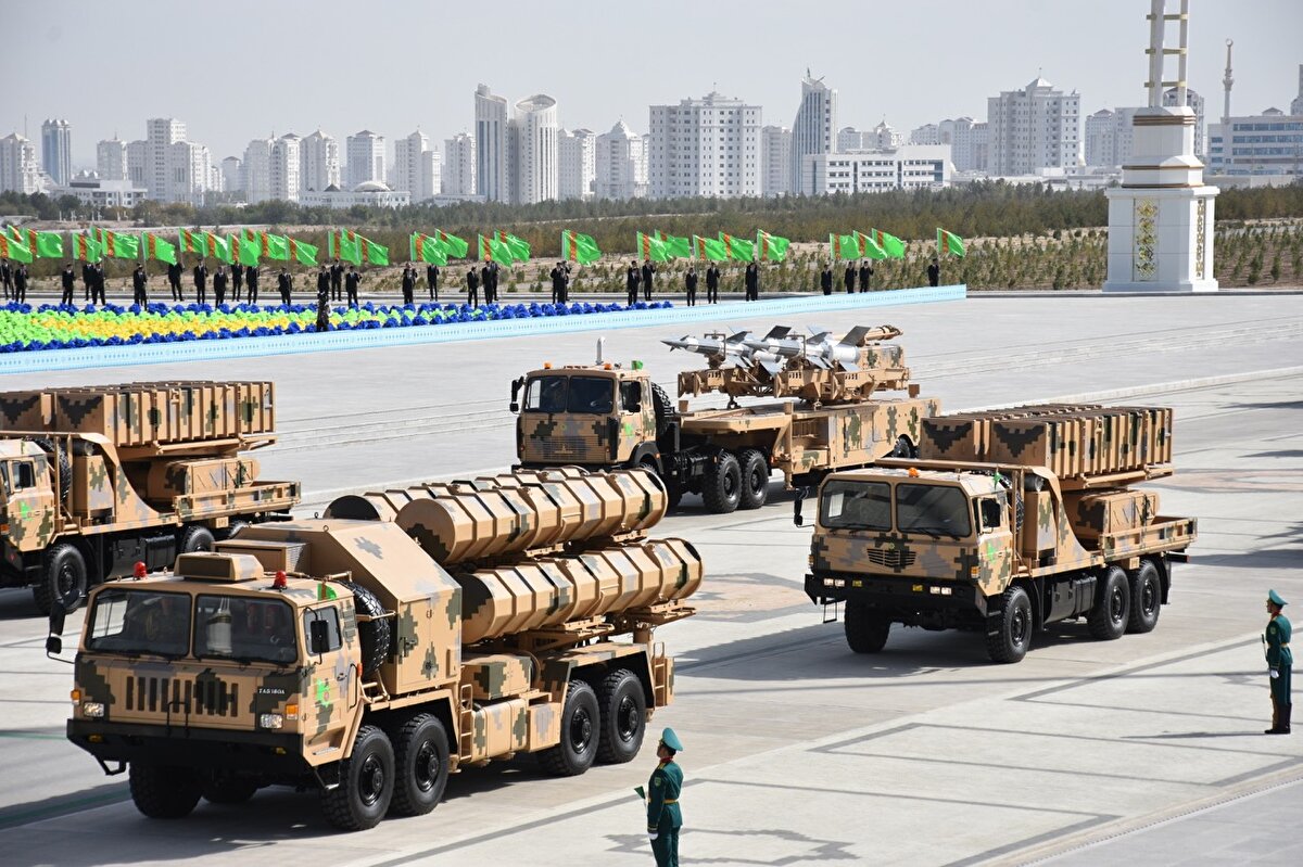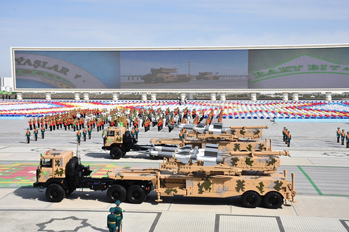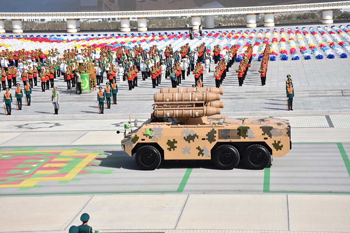 Türkmenistan'da bağımsızlığın 32. yılı dolayısıyla düzenlenen askeri geçit töreninde Türkmenistan silahlı kuvvetleri envanterindeki silahların yanı sıra Bayraktar TB2 yer aldı.