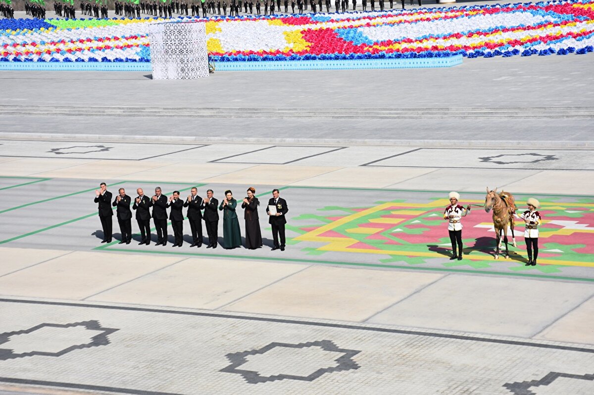 Başkent Aşkabat'taki Devlet Tribünü Kompleksi'nde düzenlenen törene, Devlet Başkanı Serdar Berdimuhamedov'un yanı sıra askeri ve kolluk kuvvetleri komutanları, Bakanlar Kurulu üyeleri, diplomatik temsilciler, televizyon ve gazetelerin genel yayın yönetmenleri, rektörler, yerel ve yabancı yayın kuruluşu temsilcileri ile çok sayıda davetli katıldı.