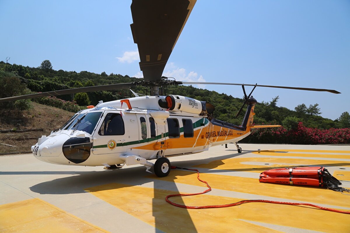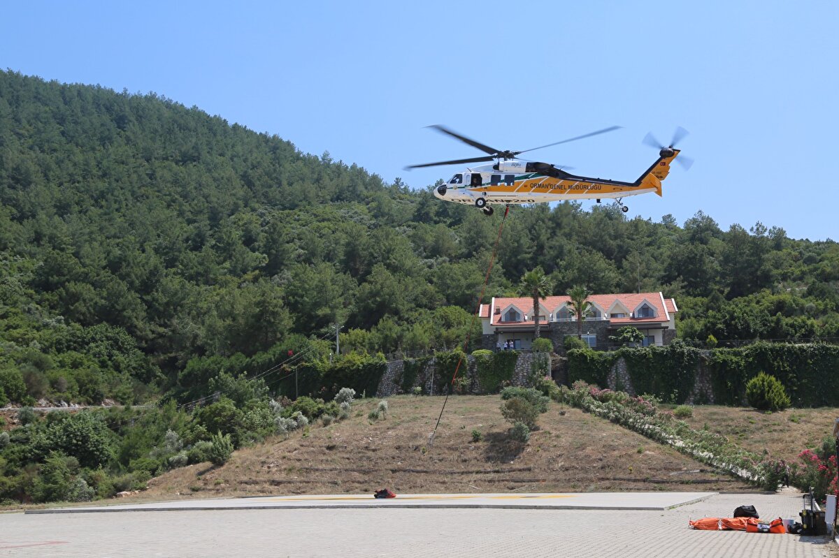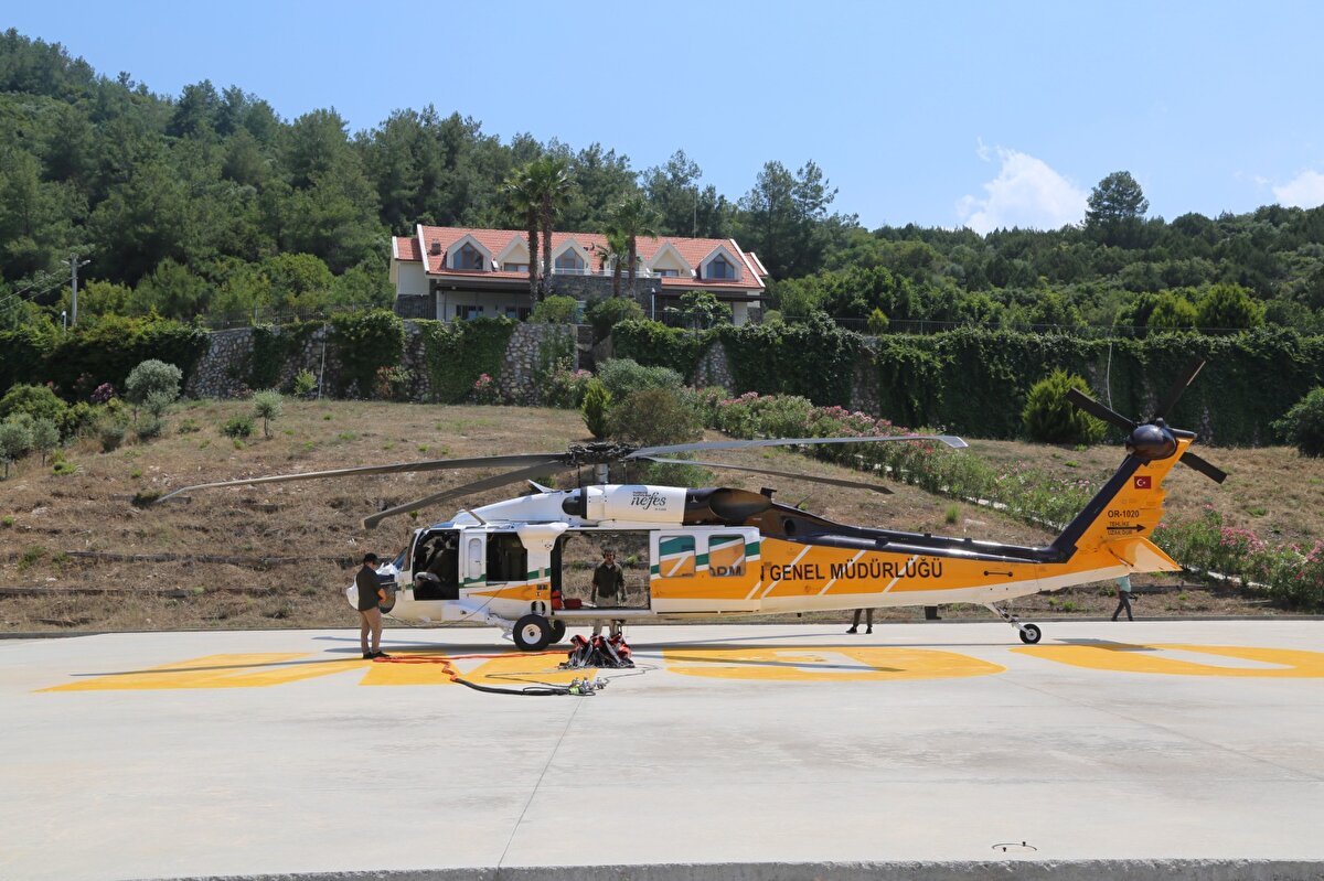 Muğla Orman Bölge Müdürlüğü Güvercinlik Gökçeler Yangın Yönetim Merkezi helikopter pistinde konuşlanan helikopterde 2 pilot ve 2 teknisyen mürettebatı görev yapacak.