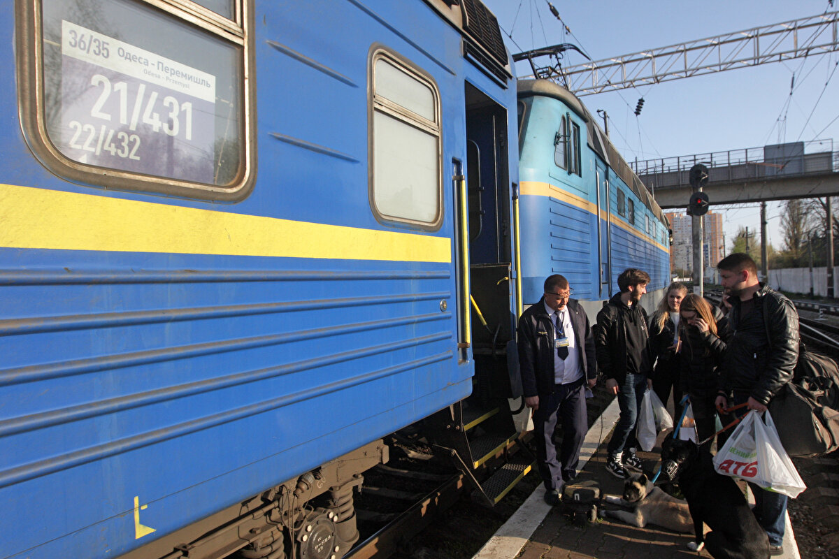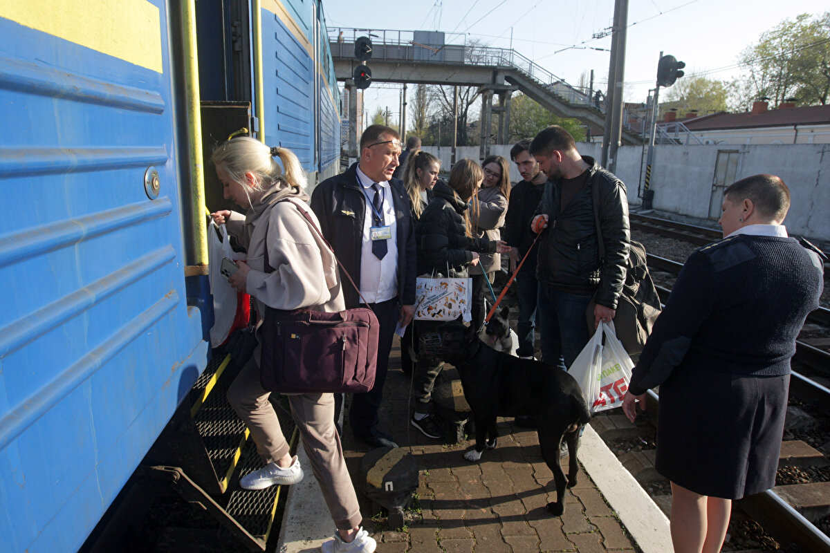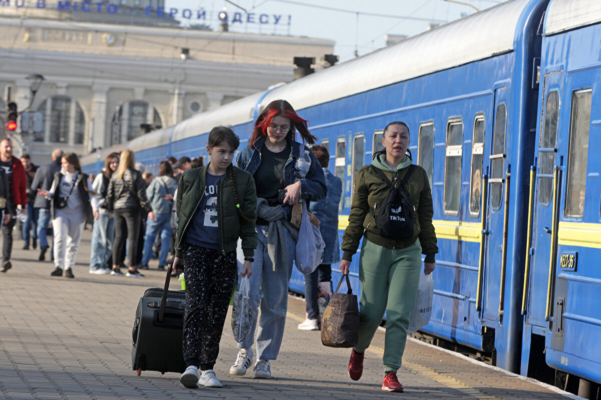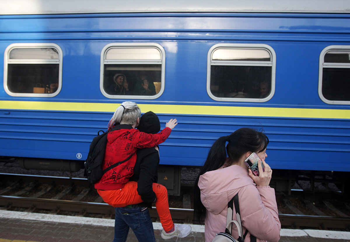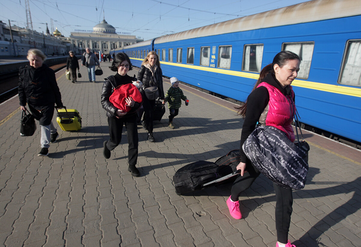 Odessa kentindeki Ukraynalılar, tren istasyonuna akın ederken, Odessa-Przemysl treniyle ülkenin batısına ve Polonya'ya gitmeyi planlayan Ukraynalıları uğurlamaya yakınları geldi.