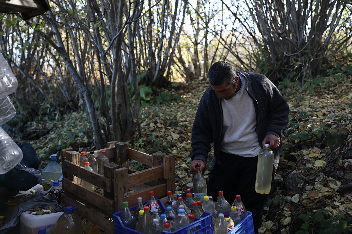 Telefon kullanmayan Budak, elma sirkesi yapıp, satarak kazandığı parayla 1,5 saat yürüyerek gittiği Zeyniler köyünden temel ihtiyaç malzemelerini alıyor.
