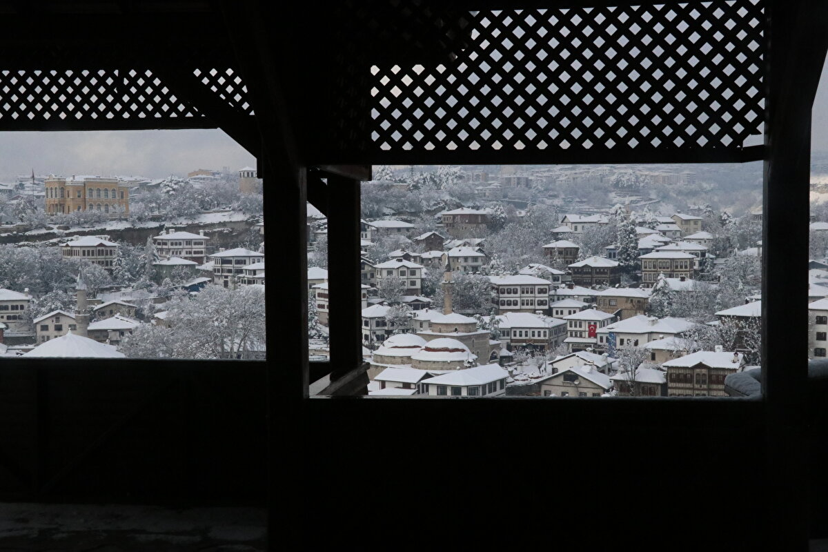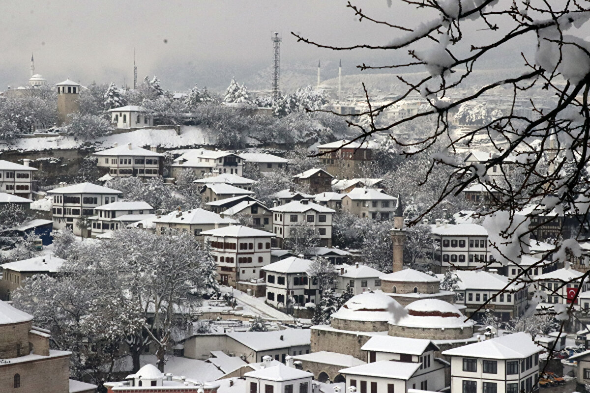 Karabük'ün UNESCO Dünya Mirası Listesi'nde yer alan Safranbolu ilçesindeki tarihi konaklar, kar yağışının ardından bir başka güzelliğe büründü. Tarihi ilçede güzel manzaralar ortaya çıktı.