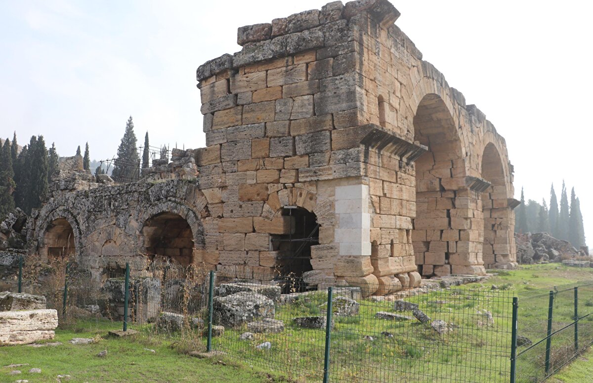 Ziyaretcilerin yoğun ilgi gösterdiği yerlerden biri de travertenlerin hemen yanında bulunan Hierapolis Antik Kenti. İki bin yıllık yapı UNESCO Dünya Mirası Listesi'nde yer alıyor.