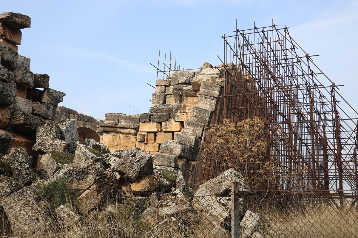 Denizli'de turizmin göz bebeği Pamukkale'de bulunan Hierapolis Antik Kenti'nde, bazı tarihi yapıların yıkılma tehlikesiyle karşı karşıya kaldı. Duvarlarında derin çatlaklar oluşan antik kentin bir bölümü ziyarete kapatıldı.