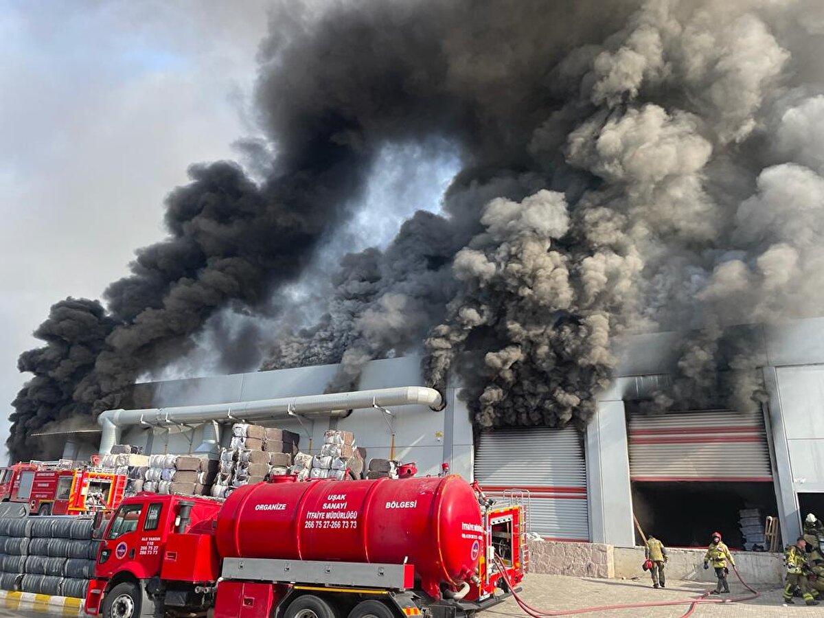 Uşak Organize Sanayi Bölgesi'ndeki bir fabrikada çıkan yangına müdahale ediliyor. Bölgede elyaf atıklardan iplik üretimi yapılan bir fabrikada henüz belirlenemeyen nedenle yangın çıktı.