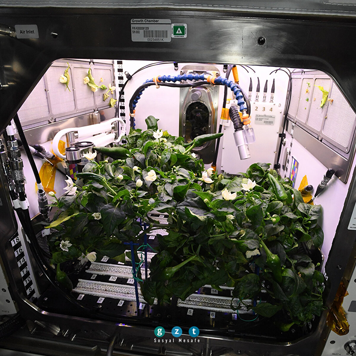 Uluslararası Uzay İstasyonu'nda (ISS) bilimsel deney kapsamında yetiştirilen acı şili biberleri, hasat edildi. Biberlerin bir kısmı istasyonda bulunan astronotlar tarafından geleneksel Meksika yemeği olan 'Tako' yapılarak tüketildi, diğer kısım incelenmek üzere Dünya'ya gönderilecek. ABD Havacılık ve Uzay Ajansı (NASA) tarafından yapılan açıklamada, ISS'te bilimsel deney amaçlı yetiştirilen Şili biberleri hasat edildi. Açıklamada, 'biberlerin yetiştirilmesinin' bugüne kadar en zorlu bitki deneylerinden biri olduğu ifade edildi. Acı şili biberlerinin bir kısmı astronotlar tarafından Tako yapılarak tüketilirken diğer kısım ise üzerinde daha fazla inceleme yapılmak üzere Dünya'ya gönderilecek. Çalışma, NASA'nın uzun süreli uzay görevleri için gıda ürünleri yetiştirme konusundaki bilgisine katkıda bulunacak.