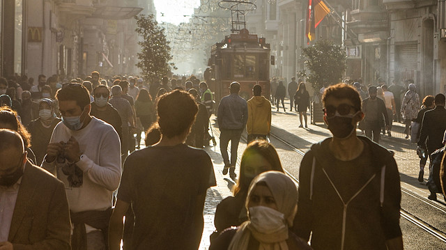 Koronavirüs vakalarındaki artışa, sık sık yapılan kalabalık yerlerden uzak durulması uyarılarına rağmen Taksim İstiklal Caddesi boyunca neredeyse mesafesiz kalabalık dikkat çekti. Birçok vatandaşın ise maske takmadığı görüldü.