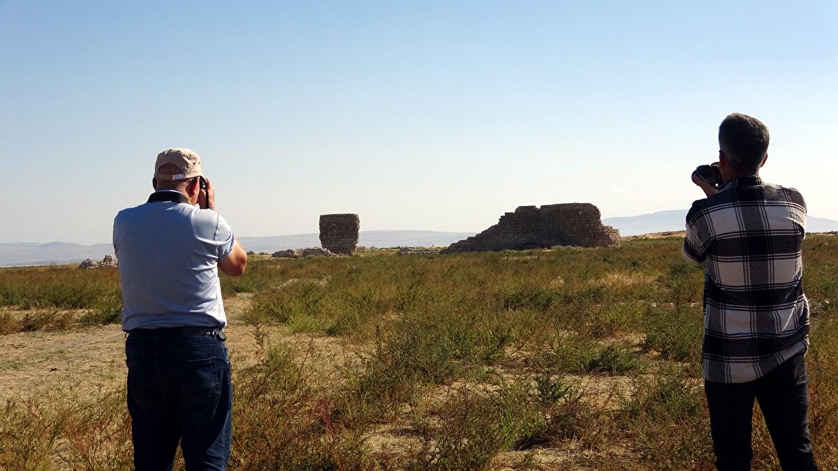 Van'ın Erciş ilçesine bağlı Çelebibağ Mahallesi'nde, bölgede yaşanan kuraklıkla Van Gölü'nde 6 kilometreyi geçen çekilme meydana gelmesiyle su altında kalan tarihi Erciş Kalesi'ni gün yüzüne çıktı.