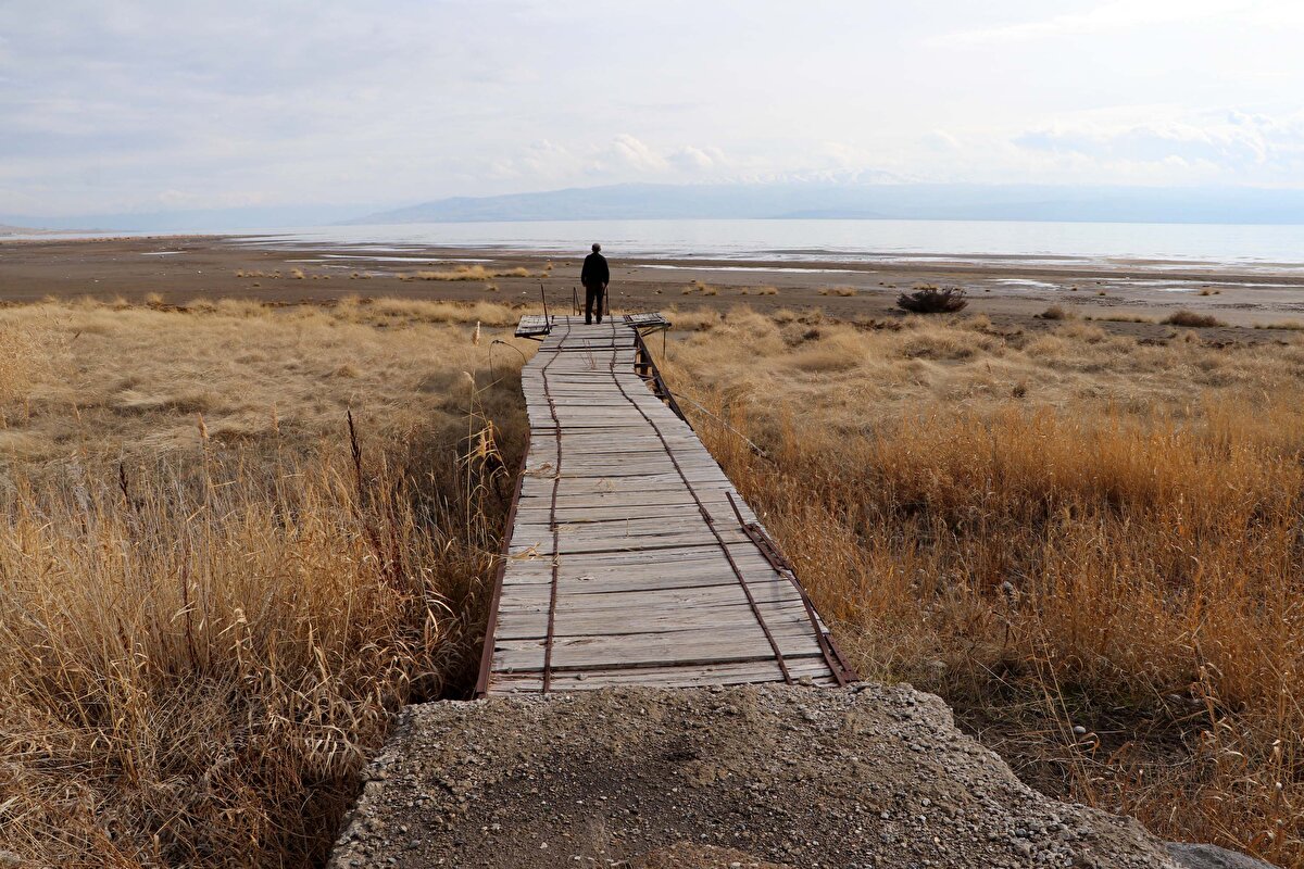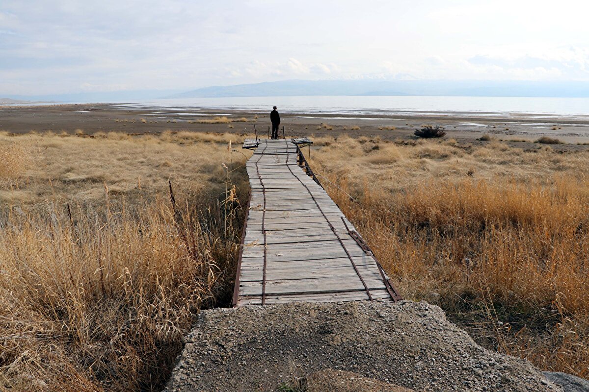 Dünyanın en büyük sodalı gölü, Türkiye'nin ise en büyük gölü olma özelliğine sahip 1700 metre rakımdaki 3 bin 712 kilometrekarelik Van Gölü'nde yaşanan çekilmeyi son yıllarda çekilen fotoğraf kareleri gözler önüne serdi. Uzmanlar, yeterli yağışların olmaması halinde çekilmenin hızlı bir şekilde devam edeceğini belirtti.