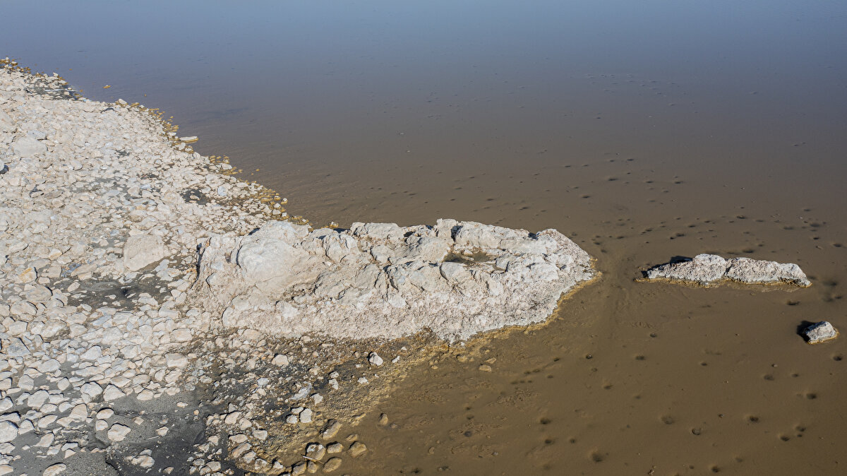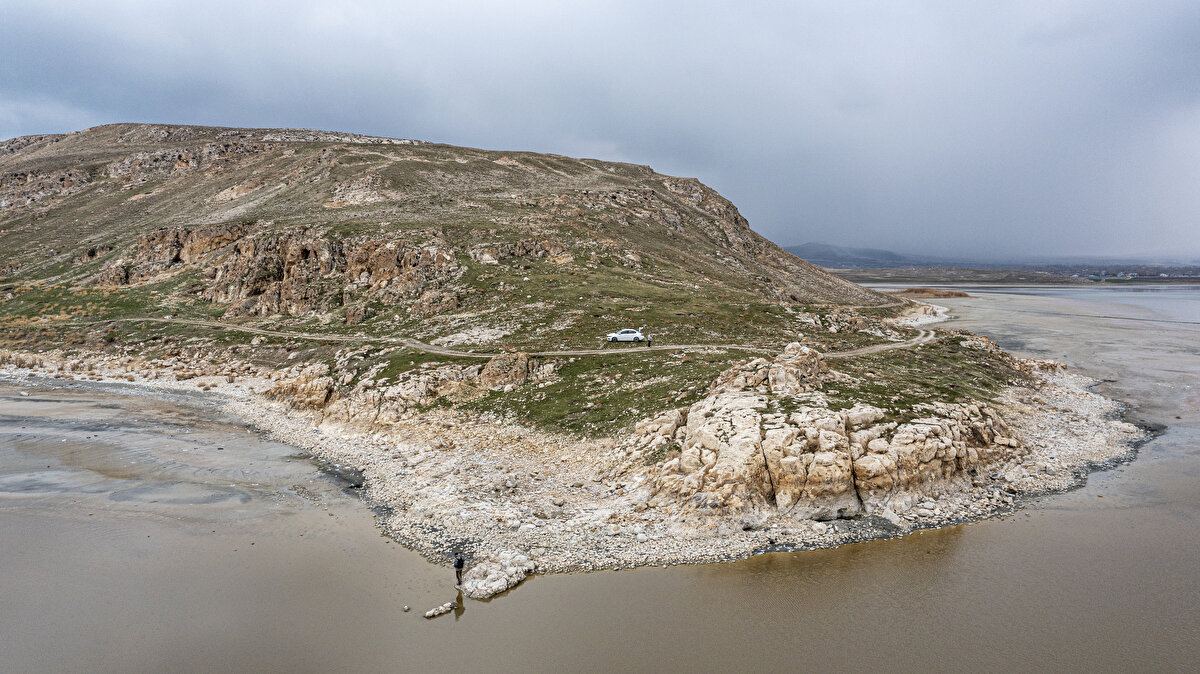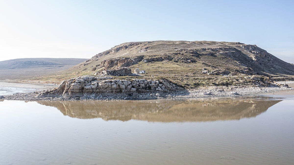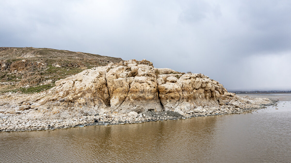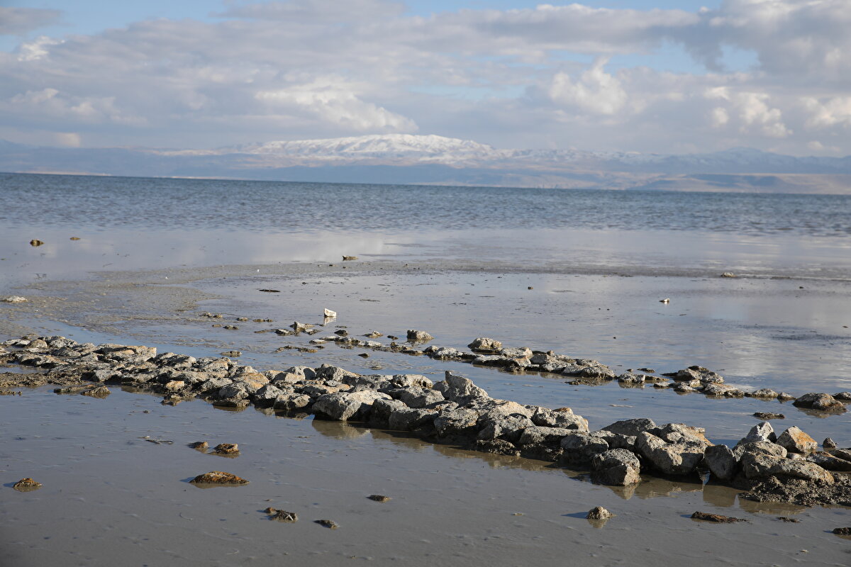 Van Gölü'nde suların çekilmesiyle tarihi yapı ortaya çıktı