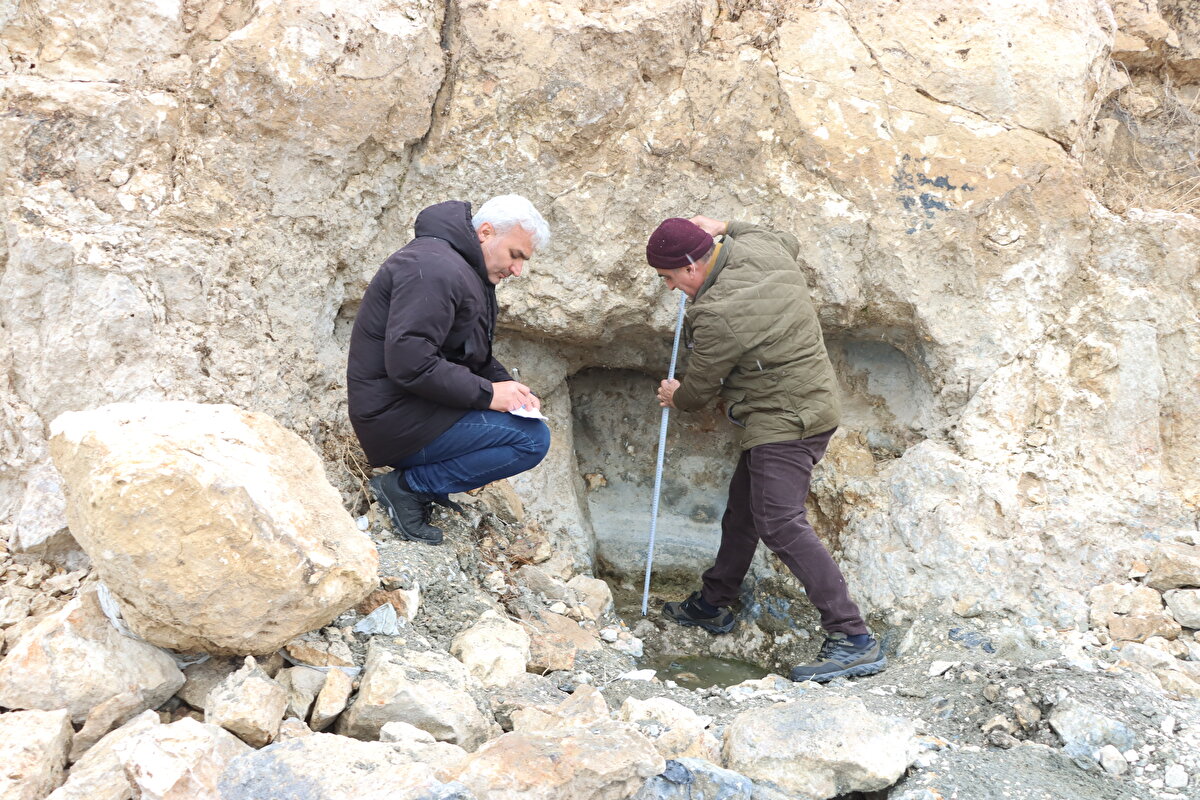 Van Yüzüncü Yıl Üniversitesi Edebiyat Fakültesi Arkeoloji Bölümü Başkanı Prof. Dr. Rafet Çavuşoğlu ile Van Müzesi Müdürü Fatih Arap, suyun çekildiği bölgeye giderek ortaya çıkan yapıları inceledi.