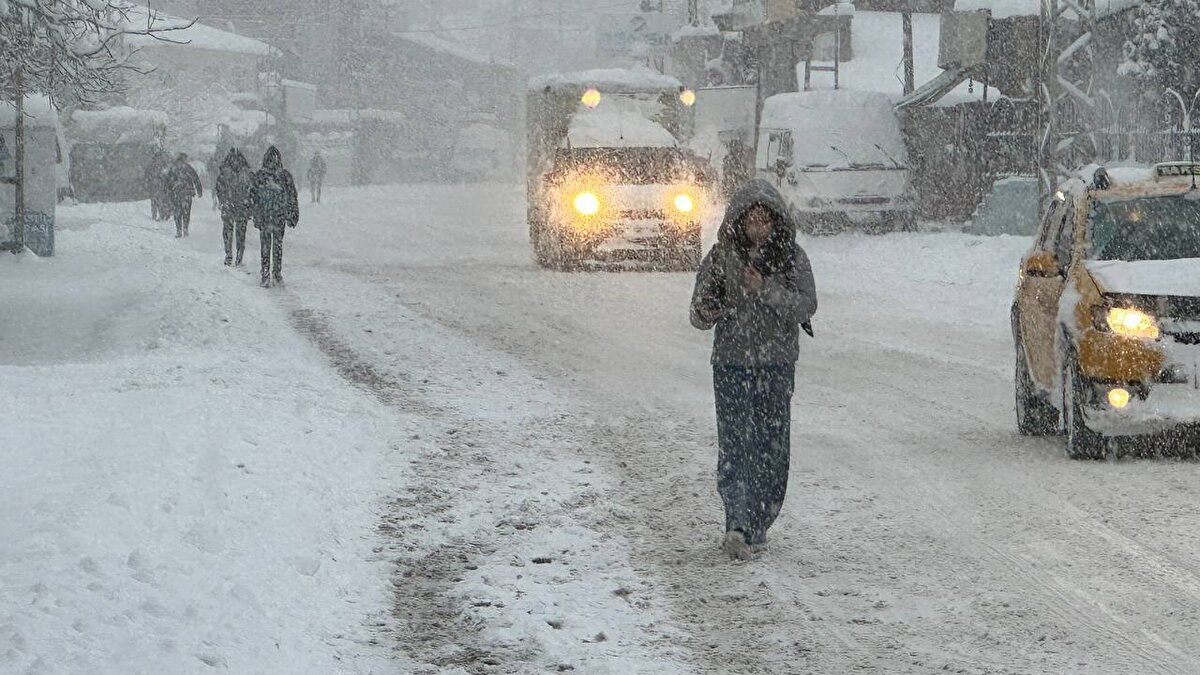 Sürücülerin trafikte ilerlemekte güçlük çektiği ilde, ağaçlar ve araçların üzerinde kar birikti, yayalar kaldırımlarda yürümekte zorlandı.
