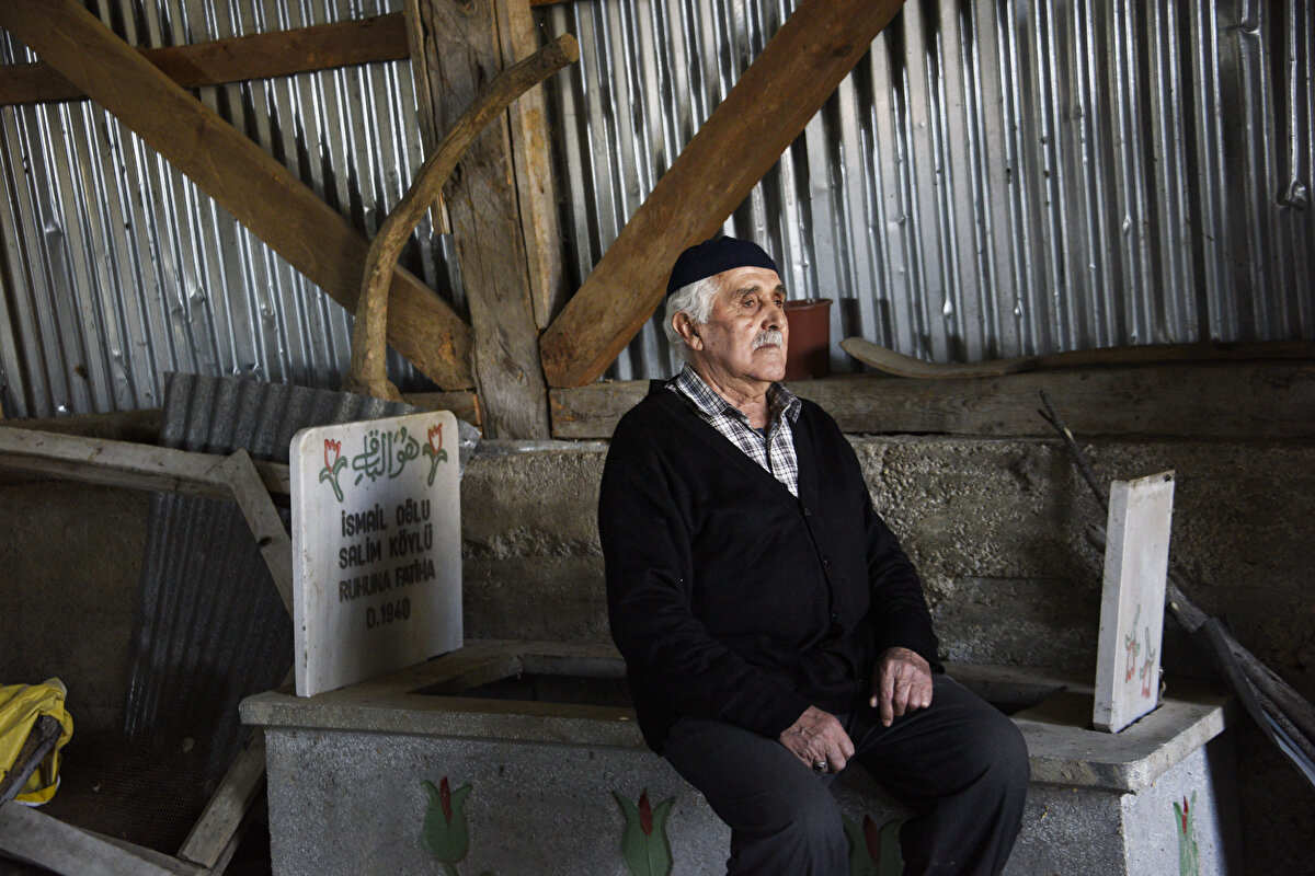 Köyde yalnız olduğunu belirten Köylü, "Çocuklar, 'Kastamonu'ya bizim yanımıza gel.' diyor ama hanımı bırakıp gitmiyorum. Hanım burada, nereye gideyim? Onu bekliyorum. Köyde kimse olmadığından hanımı bırakıp gidemiyorum. Her gün evden çıkıp buraya geliyorum. Dua okuyorum, çiçek getiriyorum." diye konuştu.