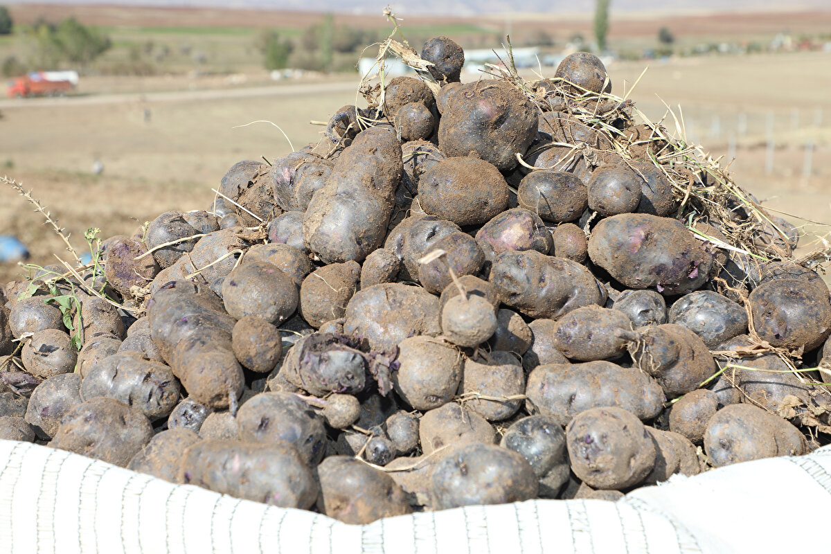 Sivas'ta, içerdiği antioksidanlar ve yüksek besin değeri nedeniyle ilgi gören mor renkli tescilli patates çeşidinin hasadına başlandı. Karbonhidrat, potasyum, C vitamini, folik asit ve demir kaynağı olan mor patatesin hasat edilmesi için özel program düzenlendi.