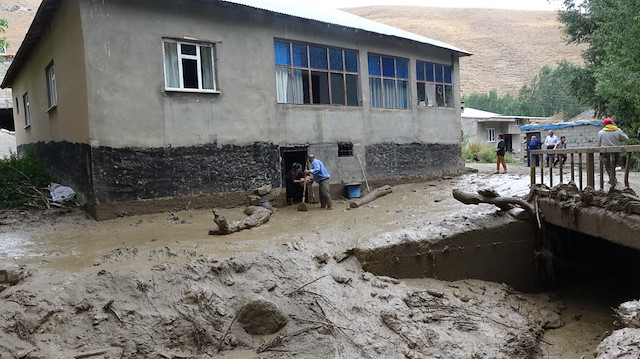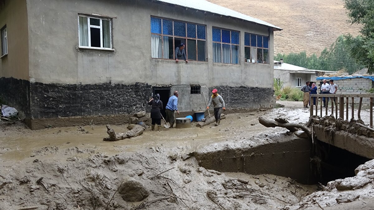 Hakkari'nin Yüksekova ilçesindeki Muşan Yaylası'ndaki sel suları, yağışın olmadığı köyde su baskınlarına neden oldu. Bazı evler su altında kalırken, dere yatağındaki 2 at sele kapılıp, öldü.