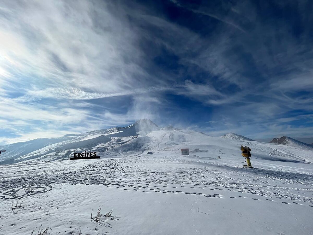 Kayseri Büyükşehir Belediyesince uygulamaya konulan Erciyes Master Planı kapsamında yapılan yatırımlarla uluslararası standartlarda kayak merkezi haline gelen Erciyes`te, mevsiminde yeterince yağmayan karın suni olarak üretilmesi için farklı metotlar uygulanıyor.