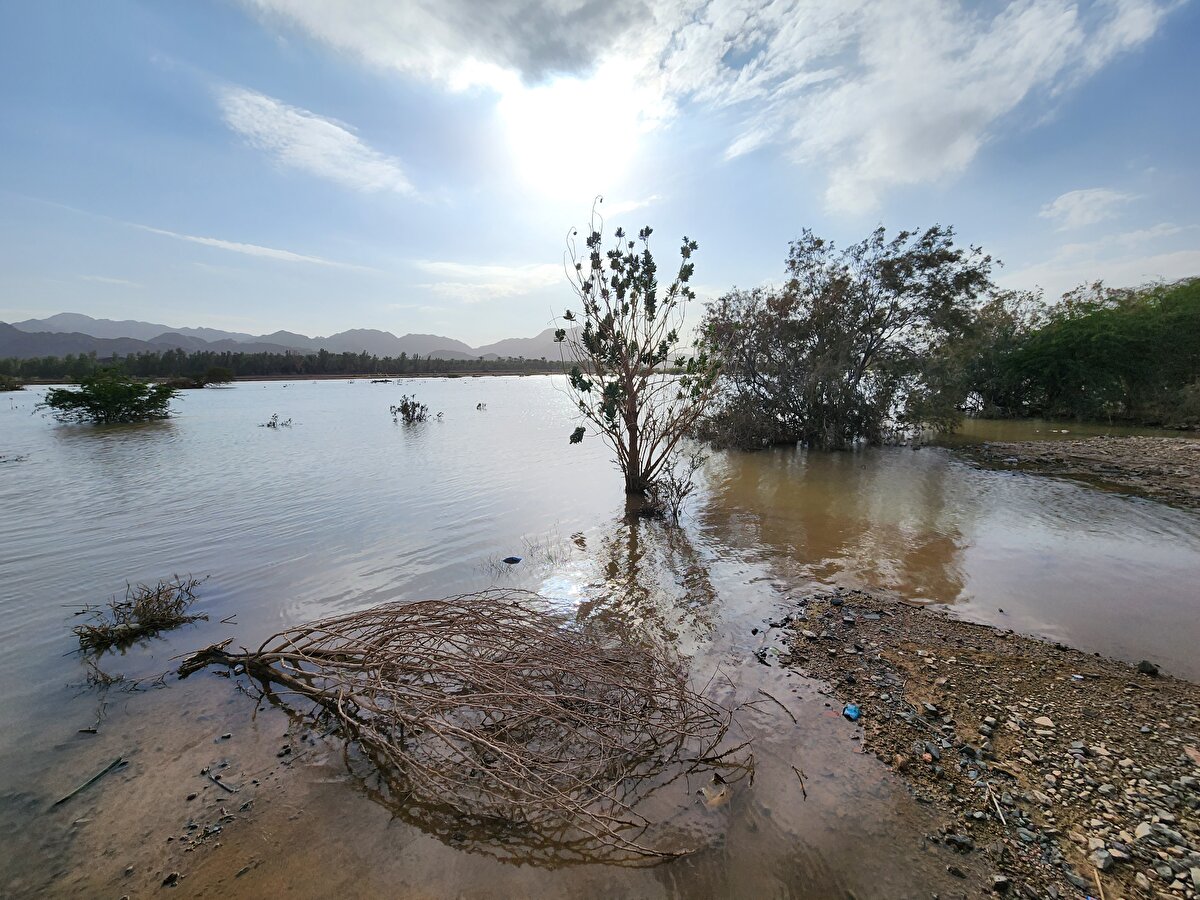 Suudi Arabistan'da şiddetli yağış yaşamı olumsuz etkilerken, doğaya can suyu oldu.