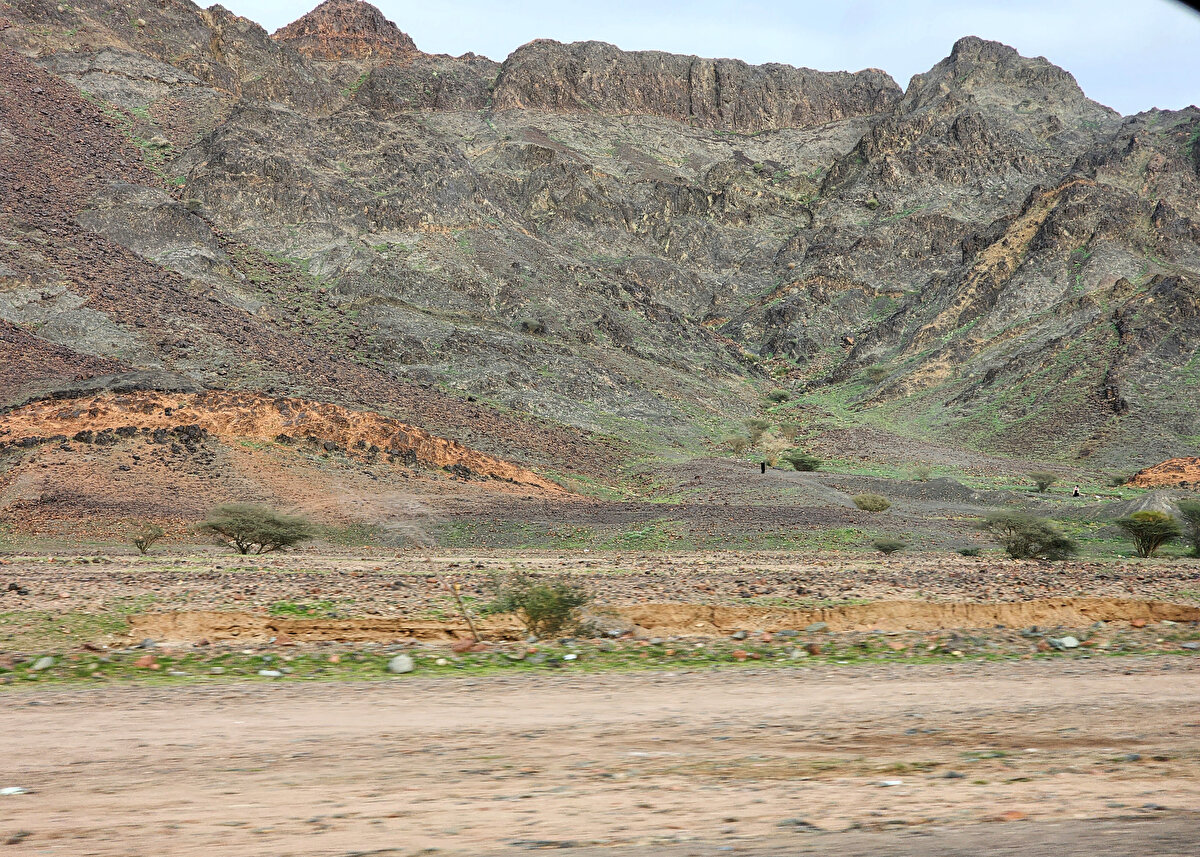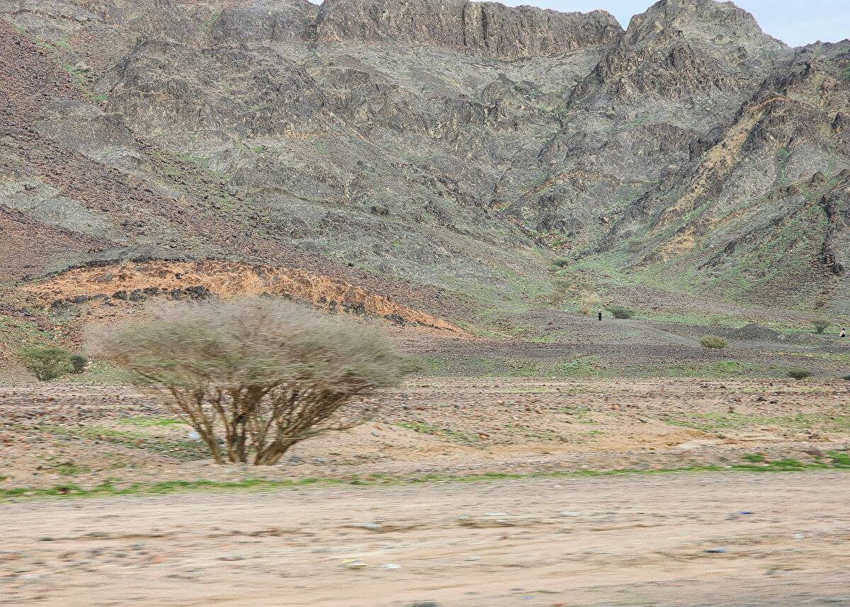 Görüntüde, birkaç gündür şiddetli yağışların etkisi altındaki Mekke ve Medine'nin dağ ve ovalarında yeşilin hakim olduğu gözlendi.
