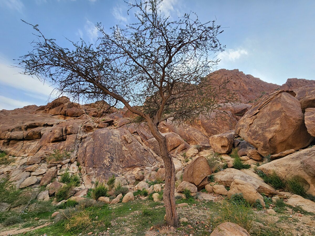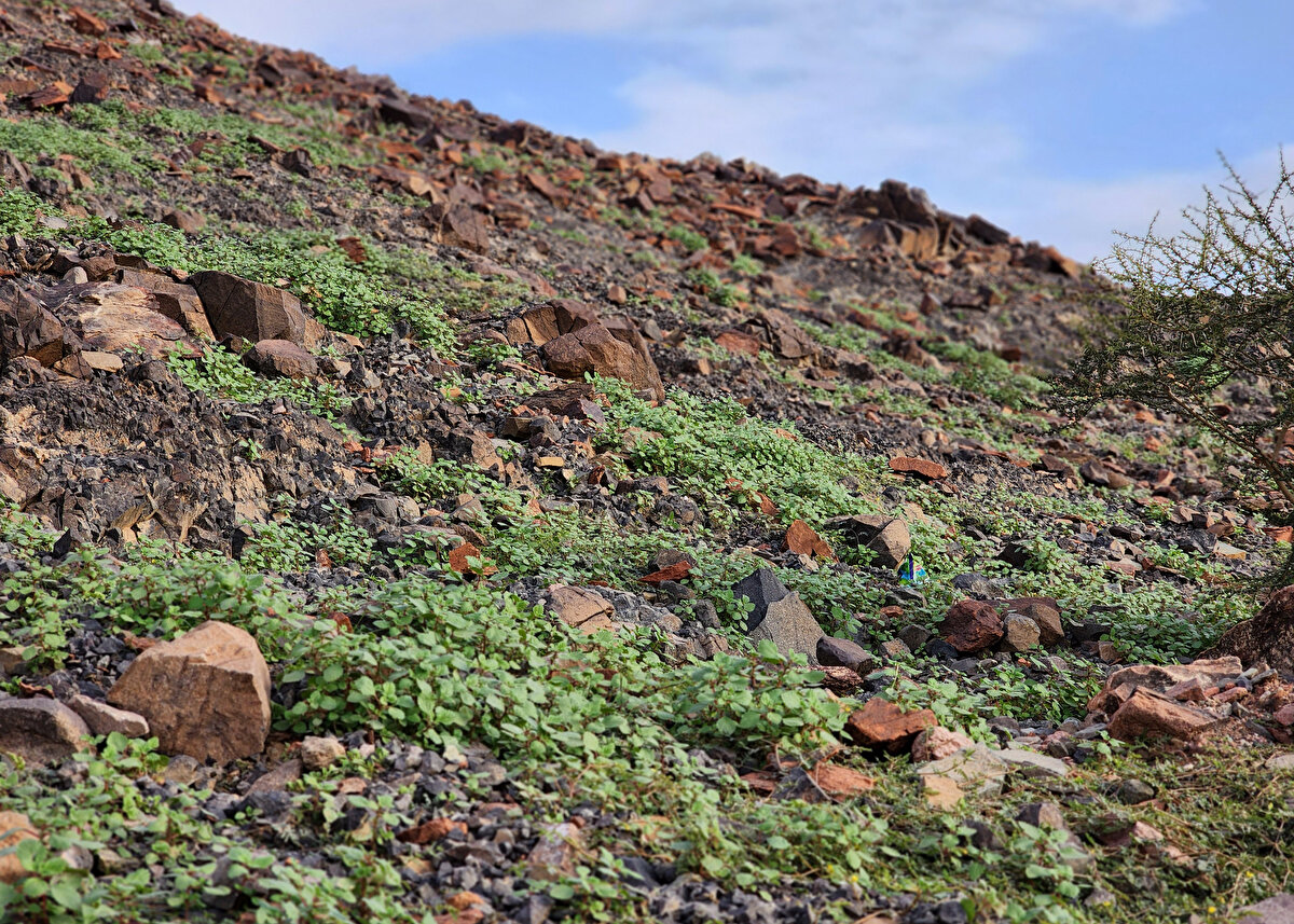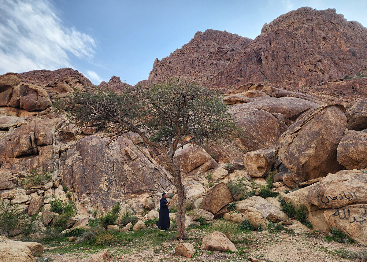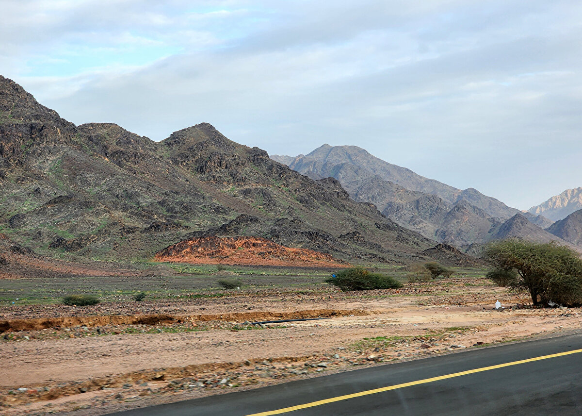 Görüntüde, birkaç gündür şiddetli yağışların etkisi altındaki Mekke ve Medine'nin dağ ve ovalarında yeşilin hakim olduğu gözlendi.