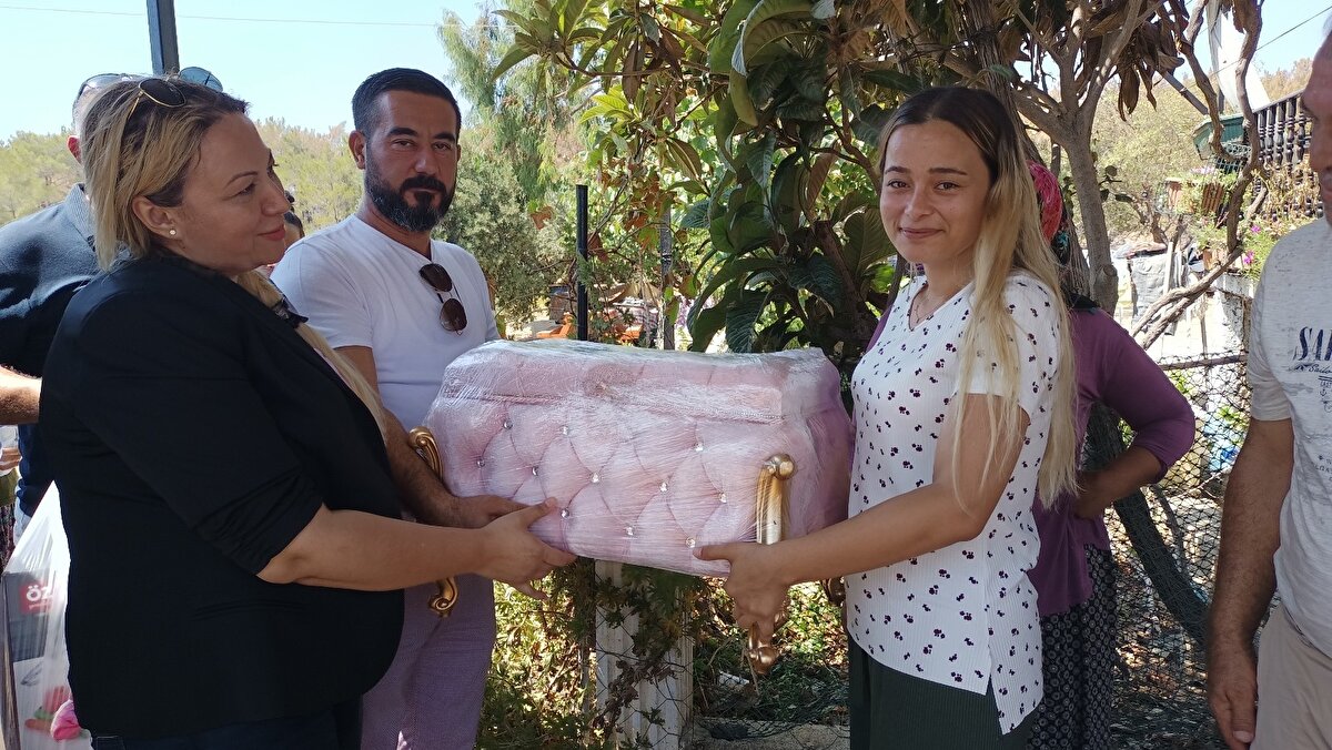 Mersin'in Silifke ilçesinde düğün hazırlığı yaparken evi ve çeyizi orman yangınında kül olan Fatma Tan'a hayırseverler bir minibüs dolusu çeyiz getirip teslim etti.
