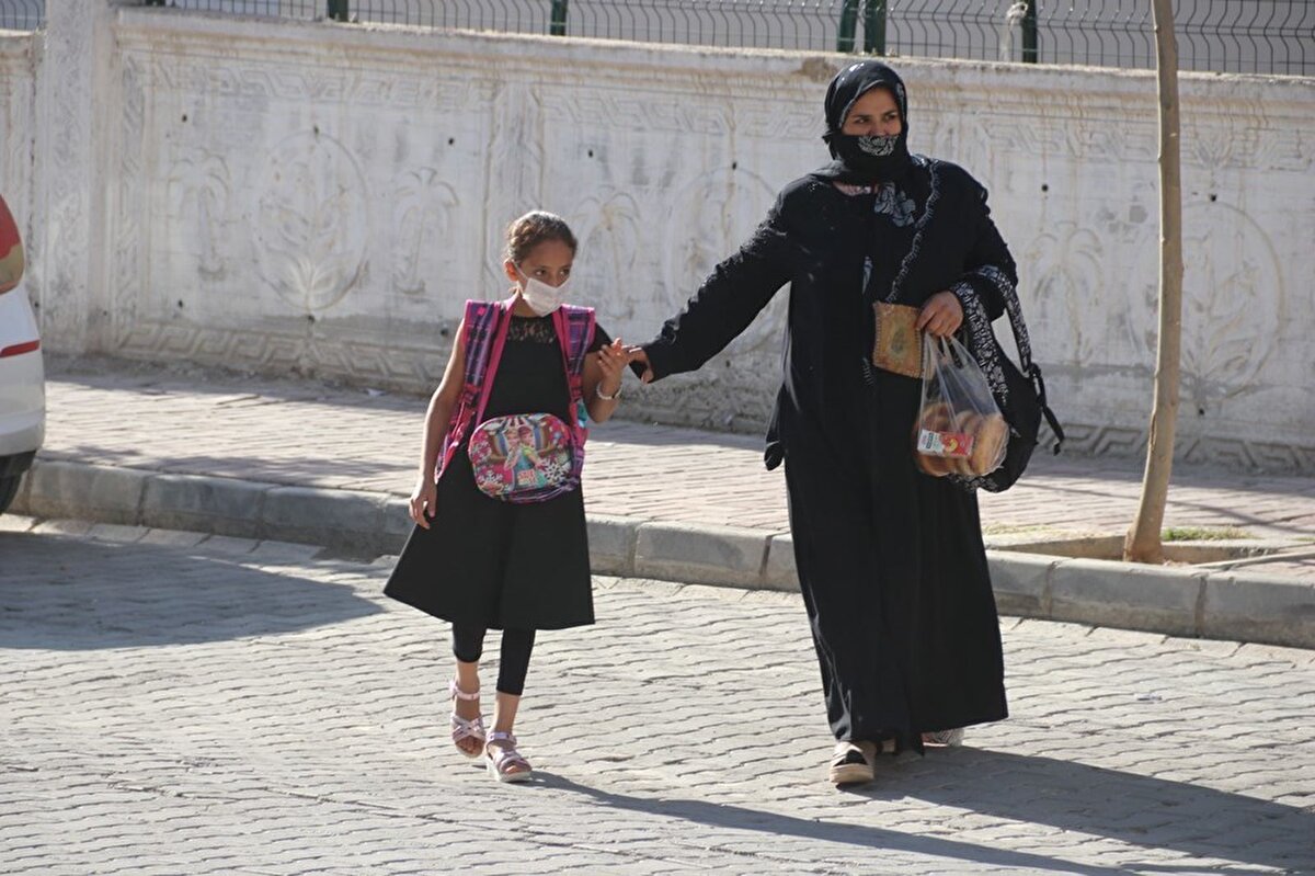 Okullarda koronavirüs önlemleri üst düzeyde alınırken, öğrenciler ve veliler maske, mesafe ve temizlik kurallarına uyduğu görüldü.