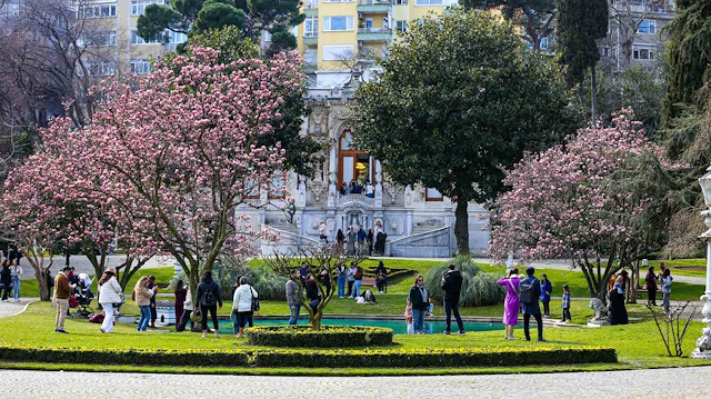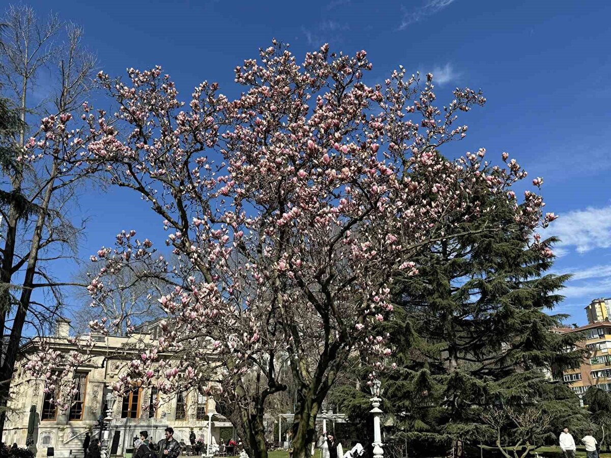 İstanbul’un tarihi yapılarından Ihlamur Kasırları, baharın habercisi manolya ağaçlarıyla renklendi.