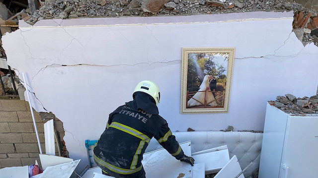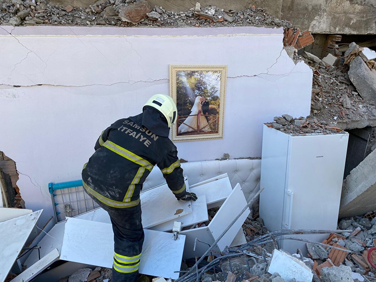 Bahçelievler Mahallesi Atatürk Bulvarı'ndaki Zümrüt Apartmanı A blok enkazında bir duvarda asılı duran çerçeveli düğün fotoğrafı dikkati çekti.