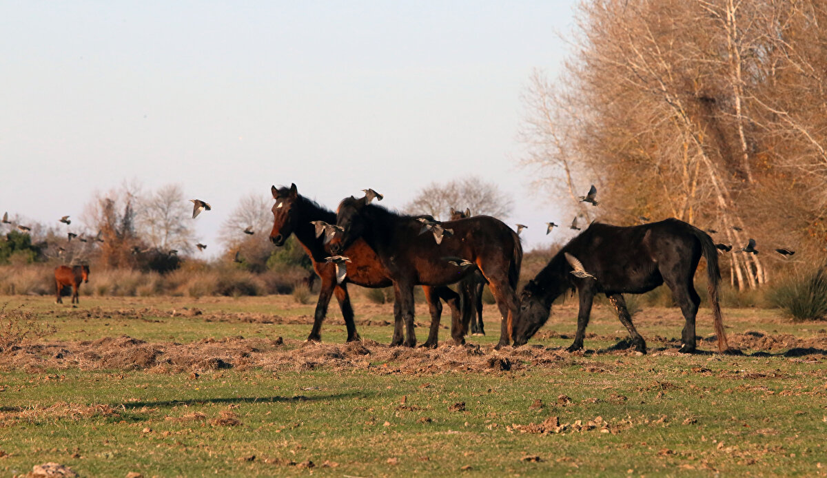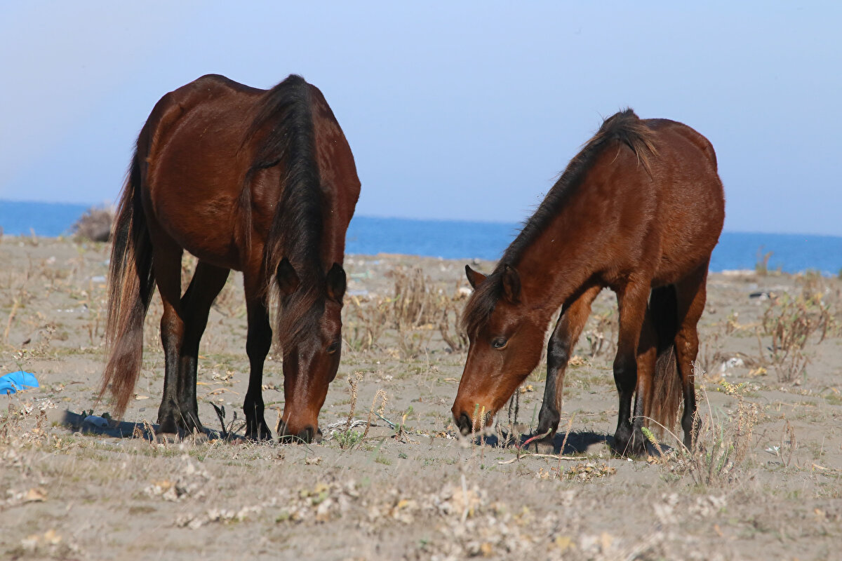 Samsun'da Kızılırmak Deltası'nda bulunan yılkı atlarının oluşturduğu görsel şölen, özellikle fotoğraf tutkunlarının ilgisini çekiyor.