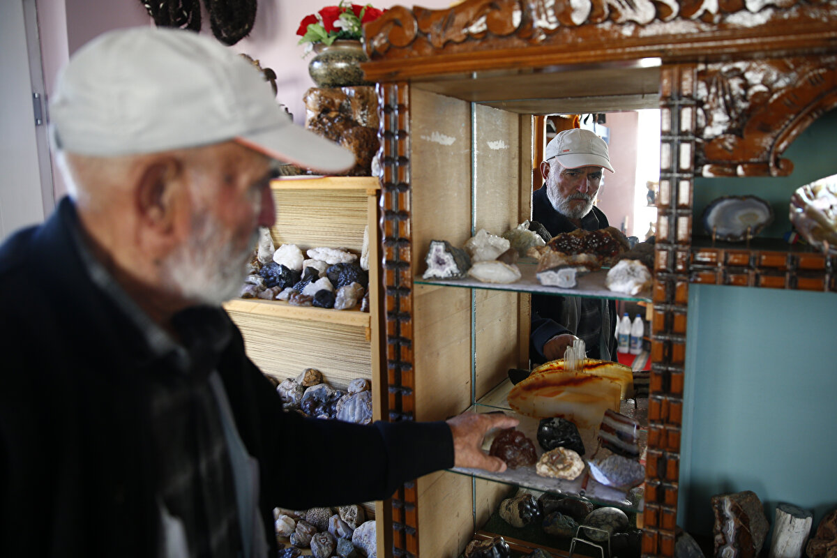 "Ben buraya girdiğimde bugün bulmuş gibi taşlara bakıyorum. Allah Allah diyorum, bunu daha önce görmedim mi acaba. Saatlerim geçiyor böyle tek tek incelersem. Kur'an-ı Kerim meaili okurken de mesela bir sureyi okuyorum, aradan zaman geçtikten sonra tekrar okuduğumda hep değişik geliyor, kazdıkça bir şey çıkıyor gibi. Taş işi de öyle. Bulurken de öyle bakarken de öyle. Oğlum Sedat ile hematit taşı ocağına gittik ramazanda. Sahurdan sonra çıktık, öğlen olmuş farkında değiliz. 'Biz neredeyiz, kaç saattir dolanıyoruz' dedik, acıkma susama hiç yok bu işte."